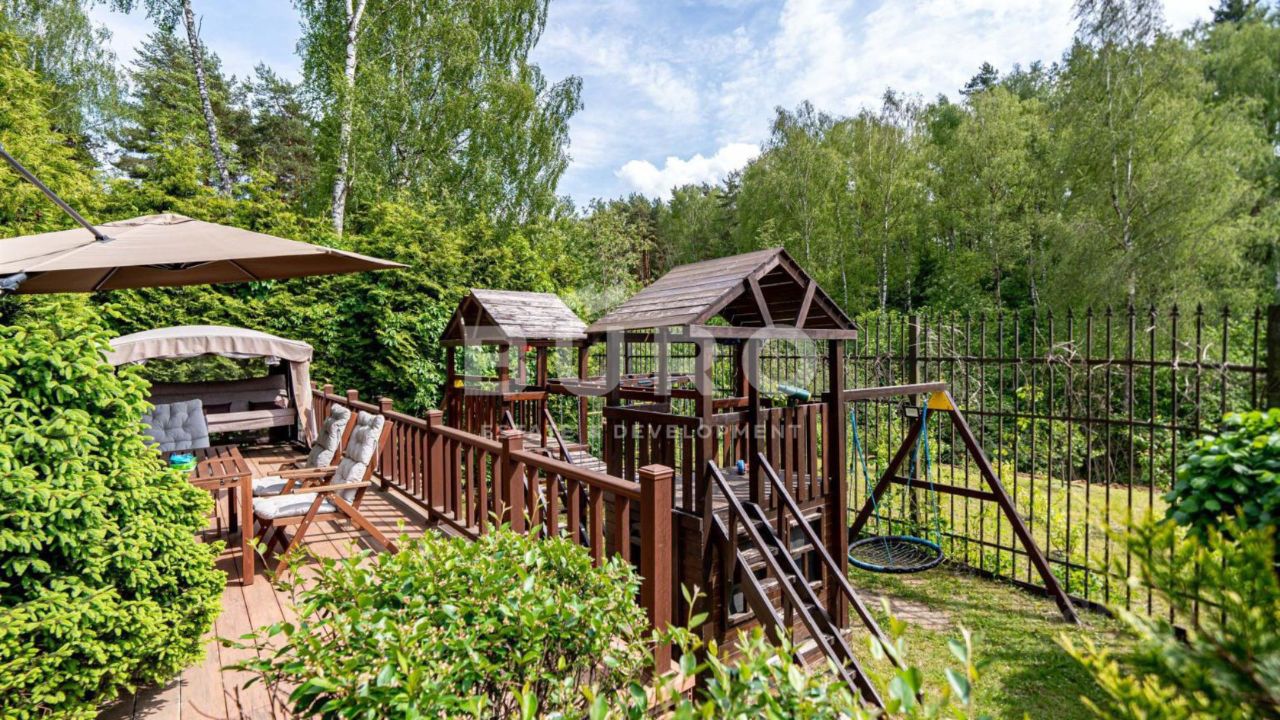 Ухоженный участок с ландшафтным дизайном утопает в зелени. Сделаны дорожки, высажено много деревьев и кустарников. Организована зона для отдыха на свежем воздухе с садовой мебелью. Построена детская деревянная площадка с качелями.