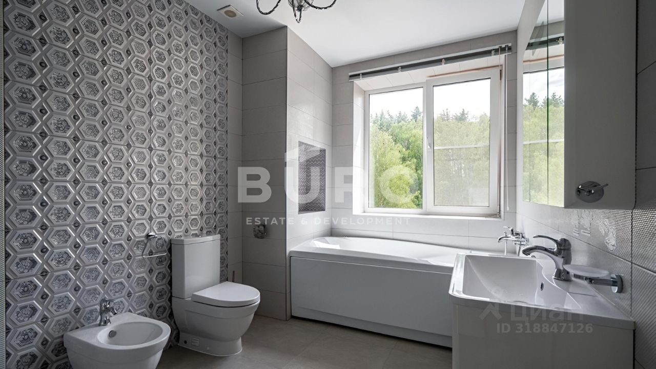 Загородный дом с 4-мя спальнями, общей площадью 420 м², представлен ''под ключ'' и расположен на видовом участке 11 соток.