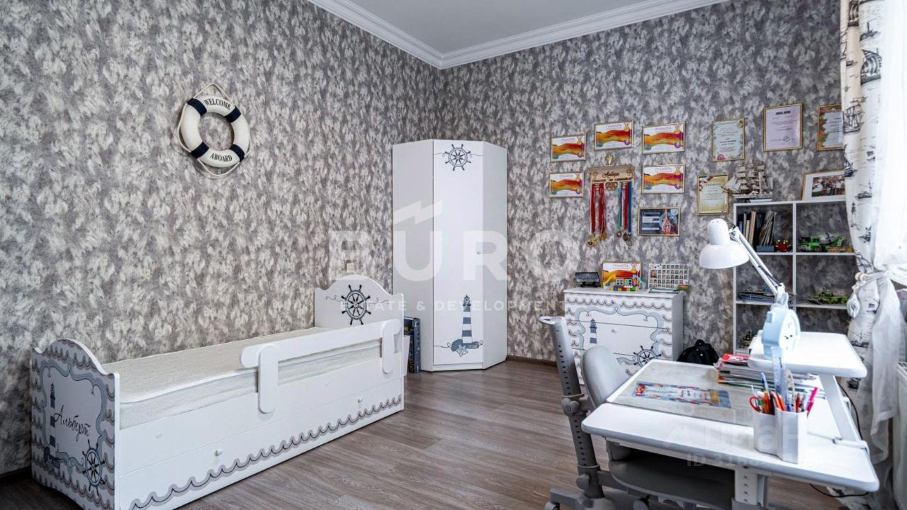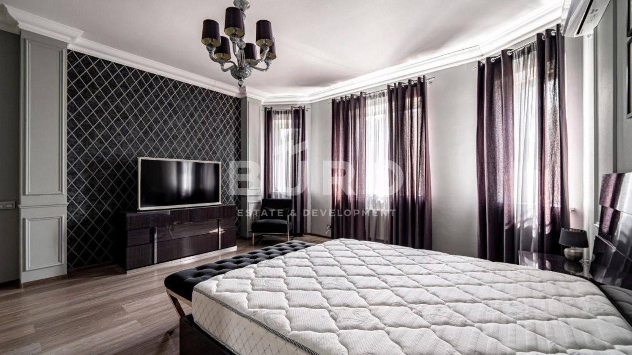 Удобная планировка включает: кухню-гостиную, 4 спальни, кабинет, который может служить дополнительной спальней, 4 санузла, оборудованный тренажерный зал и закрытую веранду.