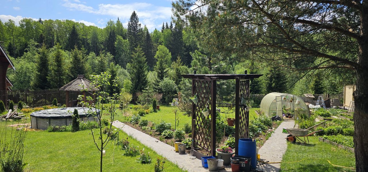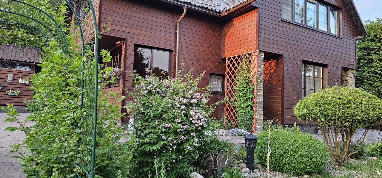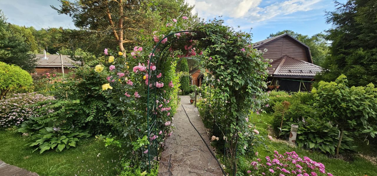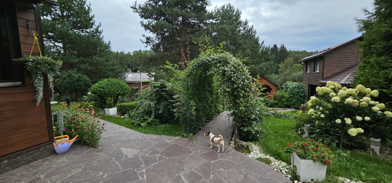 Уютный дом с садом из роз в тихом красивом месте на краю леса. ВОЗМОЖНА ИПОТЕКА. Новорижское или Волоколамское шоссе, 67 км от МКАД. Очень красивое тихое место вдали от дороги. За речкой грибной лес. Асфальт до ворот. Участок находится в самом дальнем конце деревни, в тупике. Добротный 2-эт. коттедж 139,1 м2 построен из бруса 150Х150мм, обновлен и утеплен в 2021г. Снаружи обшит планкеном из лиственницы. Покрашен. Фундамент ж/б ленточный. Цоколь облицован натуральным камнем. Вокруг дома и по всему участку обустроен дренаж с выводом за границу участка. Выполнено водоотведение. Крыша металлочерепица. Окна двойной стеклопакет. На полах 1 эт кварцвиниловая плитка, на 2 эт полы деревянные. В 2022г. выполнена генеральная ревизия/замена всей энергосистемы дома. Планировка дома, зонирование участка и другие постройки на участке продуманы и удобны для круглогодичного проживания большой семьи. 1-эт.: теплая веранда, холл, гостиная с камином, кухня, с/у с душевой кабиной, кладовая. 2-эт.: холл, три отдельных спальни (одна с застекленной лоджией). с/у. В гостиной большой финский камин с воздуховодами во все помещения дома, который является основным источником тепла в холодное время года.. Продается со всей мебелью и оборудованием (итальянская кухонная мебель, посудомоечная машина, газовая плита, СВЧ-печь, холодильник, духовой шкаф). 15кВт, прямой договор с МОЭСК. МАГИСТРАЛЬНЫЙ ГАЗ по границе участка у ворот. Вода глубокая скважина с системой водоподготовки. Септик 5 ж/б колец. Дом отапливается камином через систему воздуховодов и эл. конвекторы. Резервный мощный дизельный генератор с автоматическим включением. Установлен в отдельном помещении. В доме и по участку установлена система видеонаблюдения с выводом на сервер. Все коммуникации дома круглогодично работают, проводятся регулярные ТО. Обширный пологий участок 21,32 сотки расположен в конце улицы. Со всех сторон окружен забором (профлист, штакетник). Соседи только с одной стороны. Участок вымощен природным камнем на бетонной основе. Задняя граница участка выходит к речке, за рекой лес.. Отличная дренажная система. Газон регулярно прокашивается. . Декоративные беседки, арки, перголы, увитые цветущими растениями, создают атмосферу позитива и умиротворенности. Растут более 350 кустов роз, 30 кустов гортензий, 40 кустов пионов и множество других растений. Кроме того, на участке растут вековые сосны, различные хвойные деревья и кустарники - несколько сортов хвойных, большое разнообразие плодовых деревьев и кустарников. На участке построены:второй 2-эт. теплый гостевой дом из бруса, в нем сделан ремонт, вода, свет и сантехника. Так же на участке есть хозблок, генераторная с огромным дизельным генератором ,два хозблока для инвентаря и инструментов, залит фундамент под баню. в соседней деревне - 1.5 км. вся инфраструктура. В 15 мин езды Истринское водохранилище.