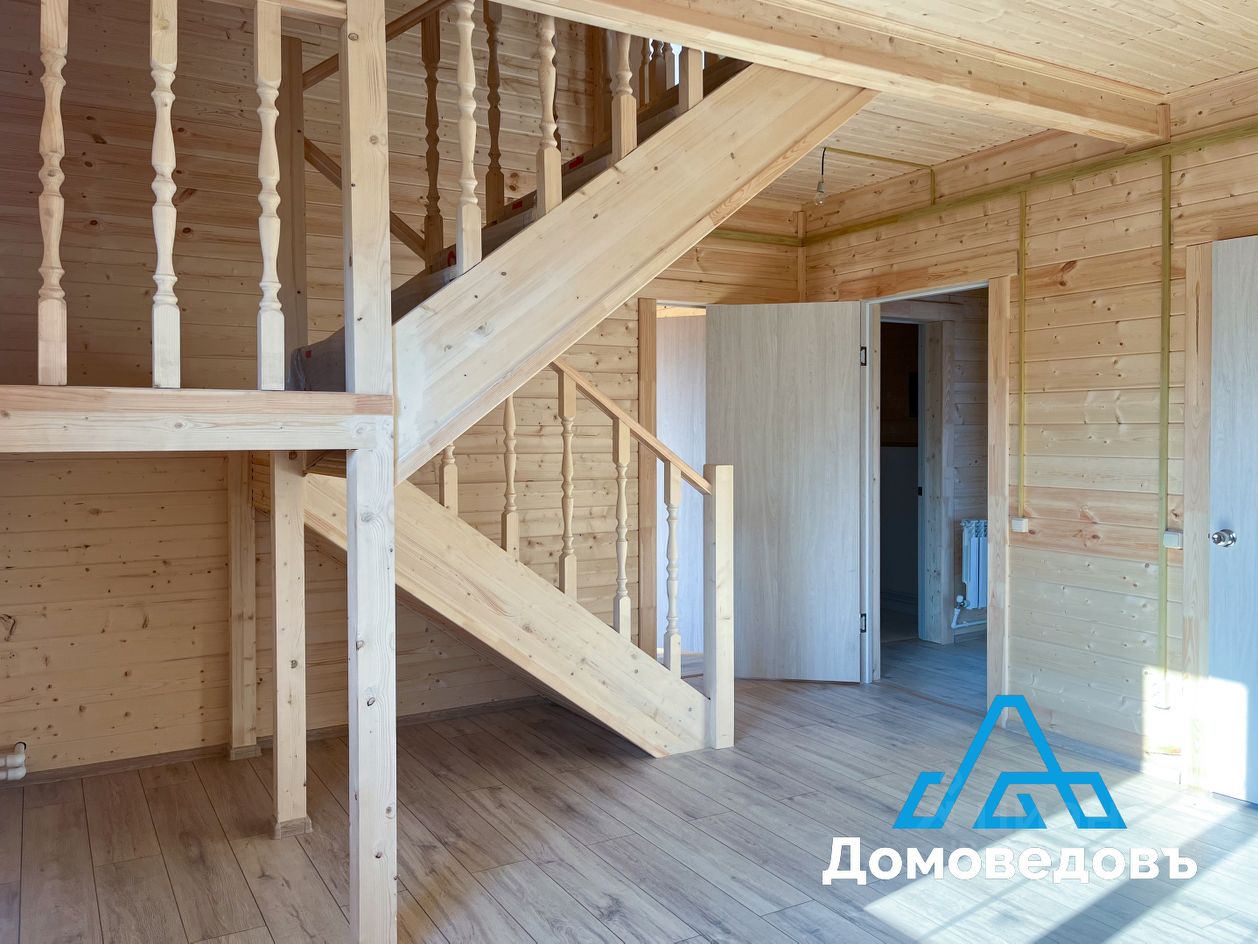 - Фундамент свайный. - Крыша металлочерепица. - Стены внутри евровагонка, снаружи имитация бруса/фасадная плитка. - Металлическая входная дверь, деревянные межкомнатные двери, пластиковые окна, лестница на второй этаж.