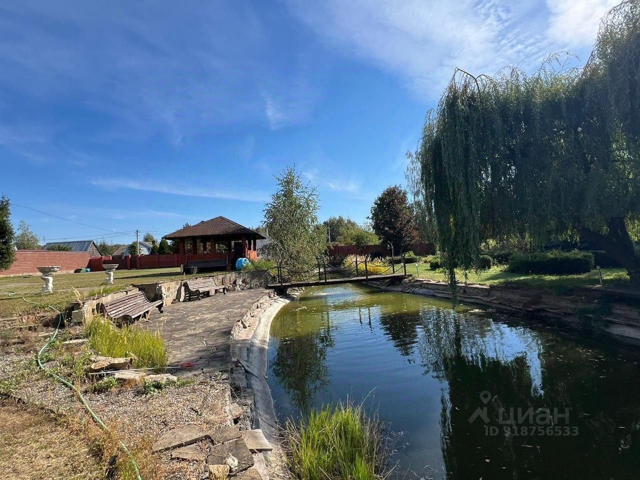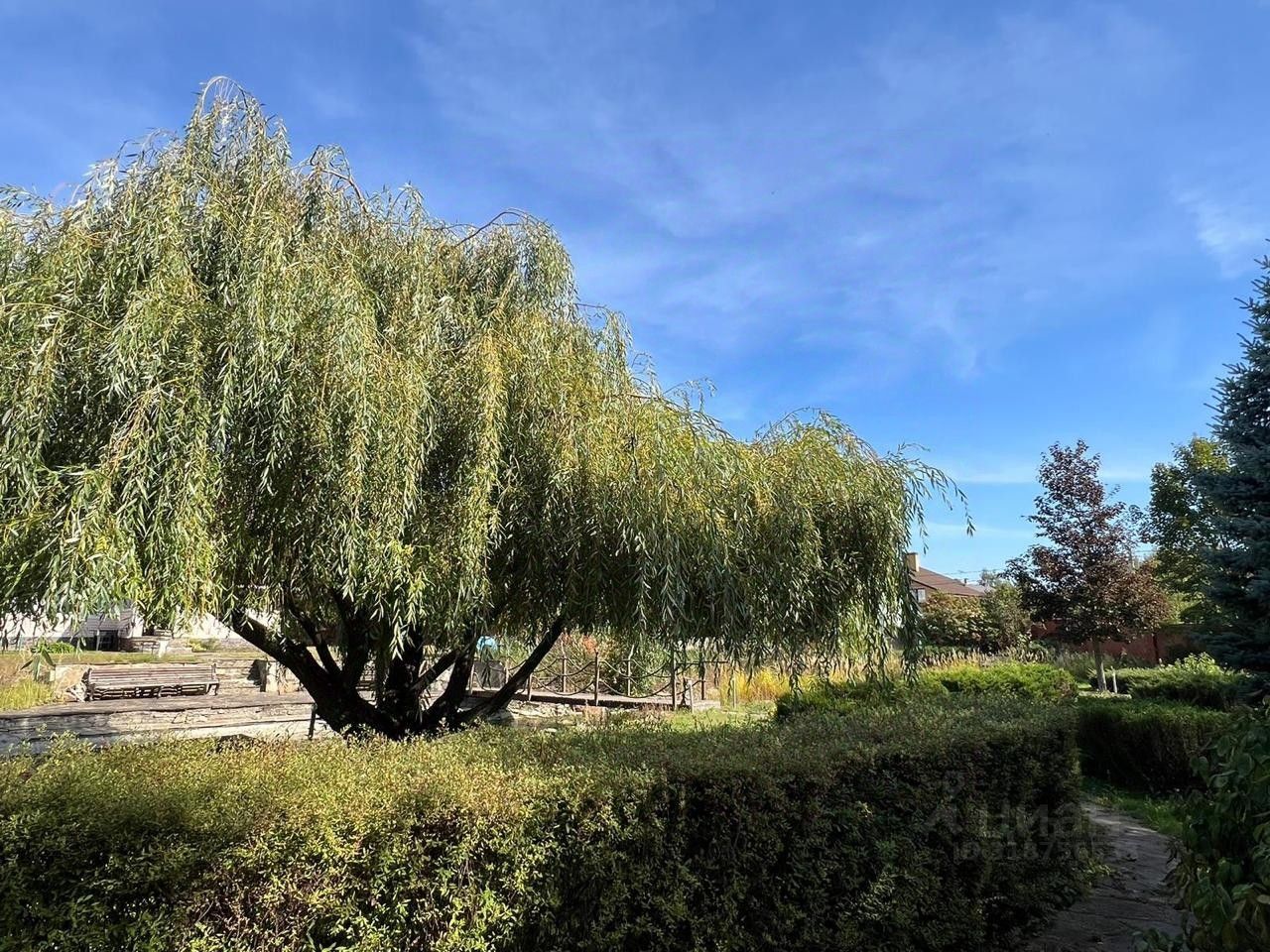 Участок со сложным ландшафтом, часть большого поместья. На участке расположен пруд, мостик через него, зона отдыха с баней. Есть возможность размежевать иначе и еще добавить себе мангальную зону и бассейн. Редкие виды растений и деревьев, а также плодородная почва, на которой расположен мини огород.