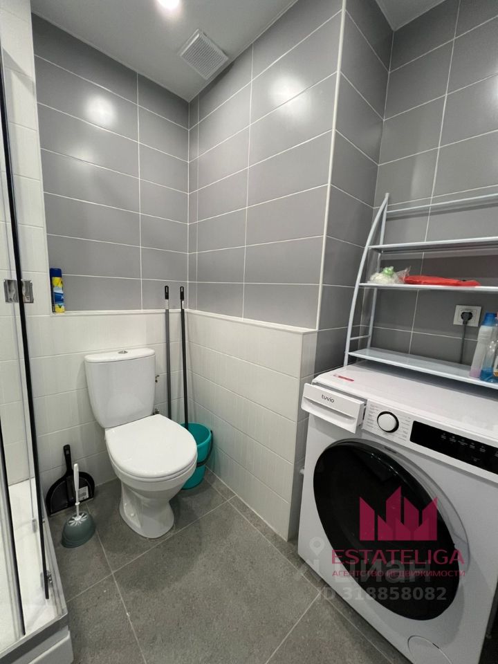 В квартире присутствует вся необходимая для жизни мебель, а также техника. В комнате расположена большой раскладной диван-кровать, рабочая зона с телевизором, барная стойка и стулья и стулья. На кухне имеется гарнитур, электрический чайник, холодильник, микроволновая печь, а также электрическая варочная панель. Имеется удобная гардеробная. Санузел совмещенный с душевой кабиной, есть стиральная машина и пылесос.