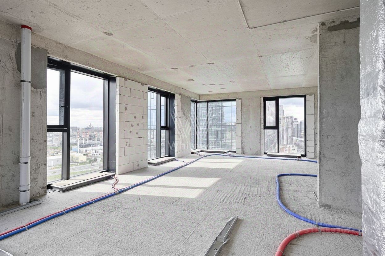 Квартира без отделки, свободной планировки, расположена на двадцать восьмом этаже в корпусе ''Север'', секция два.
