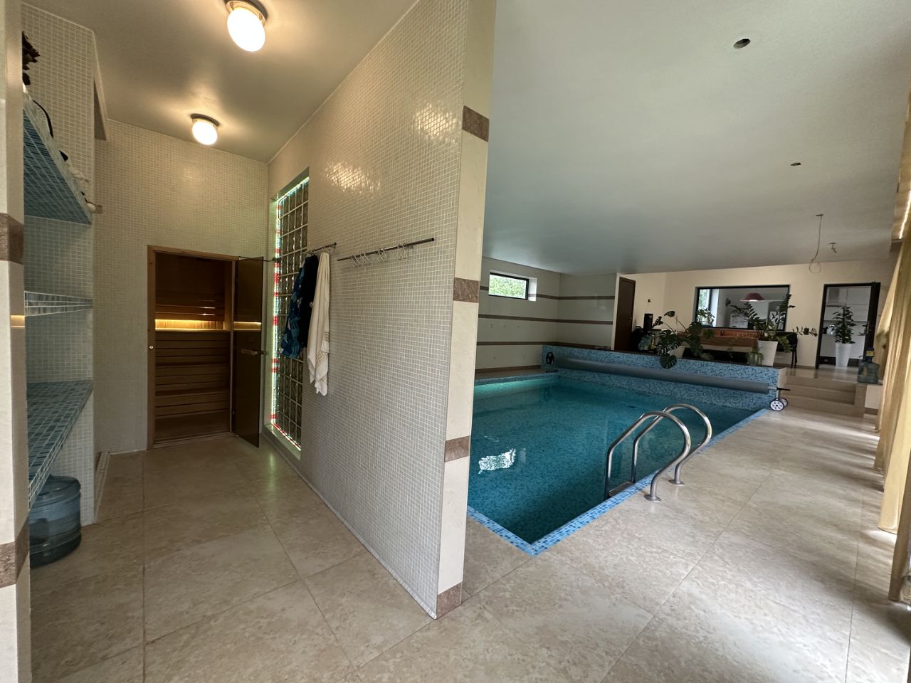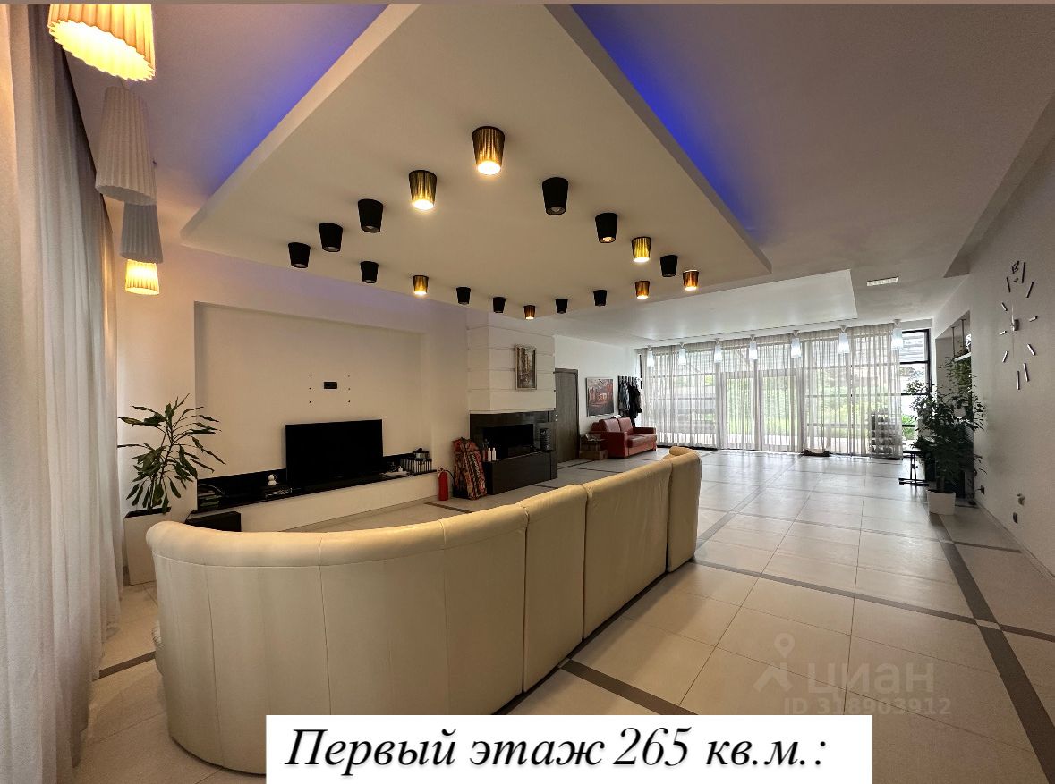 Первый этаж (265 м²): Парадная гостиная с камином — идеальное пространство для приема гостей Кухня-столовая с функциональной рабочей зоной — воплощение кулинарных шедевров Бассейн и сауна — приватный SPA-комплекс для отдыха и восстановления Спальня с санузлом — комфортное размещение для жильцов и гостей