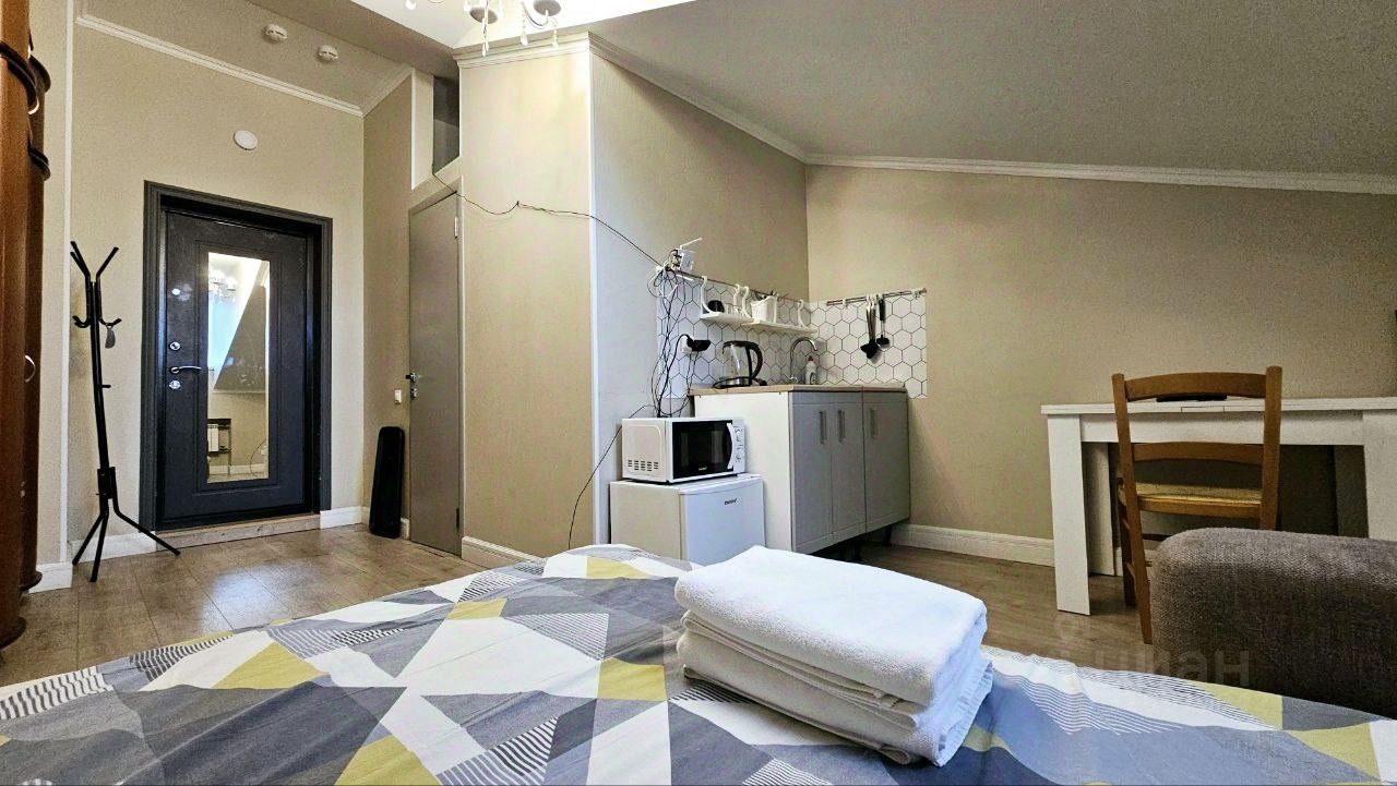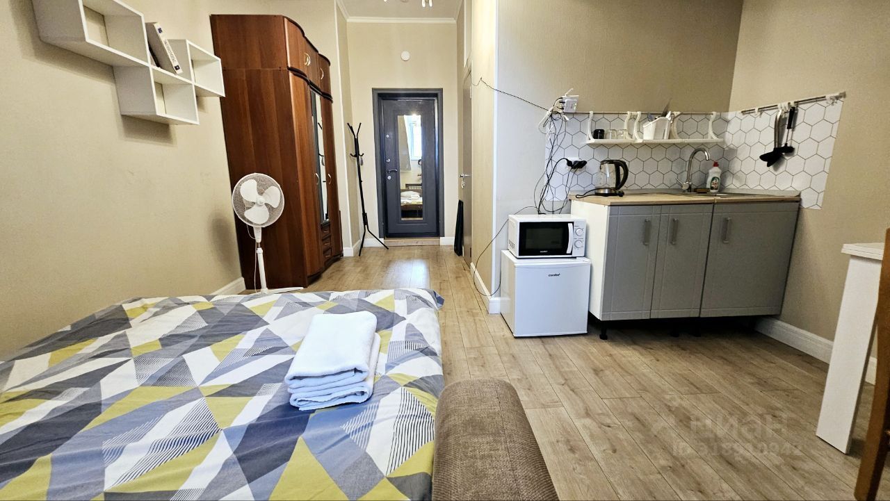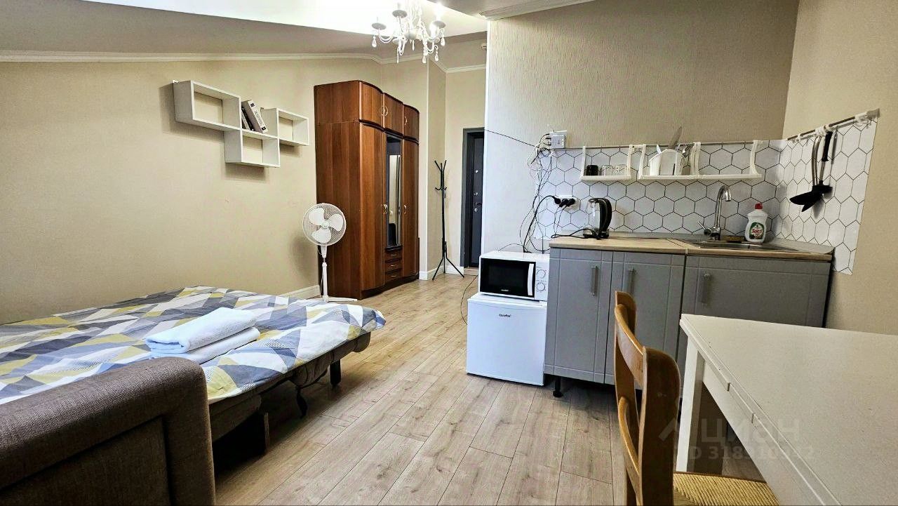 В апартаментах выполнен ремонт с использованием качественных материалов. Пространство студии организовано таким образом, чтобы каждый квадратный метр был функционален и удобен для жизни. Совмещённый санузел оформлен в современном стиле. Окна выходят на улицу, благодаря чему в помещении всегда светло и уютно.