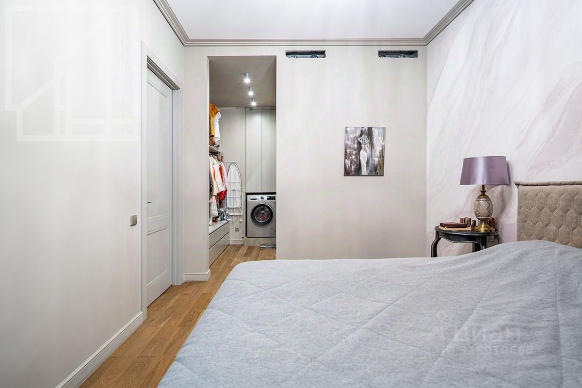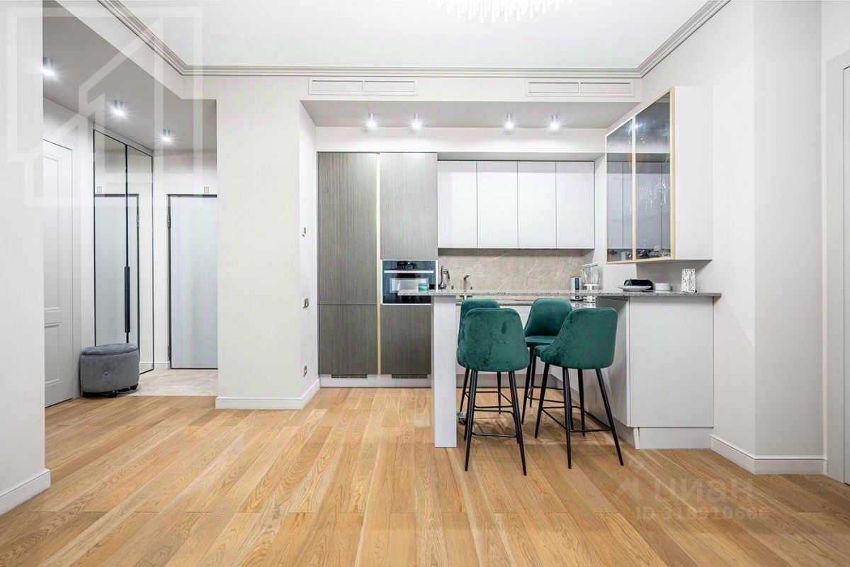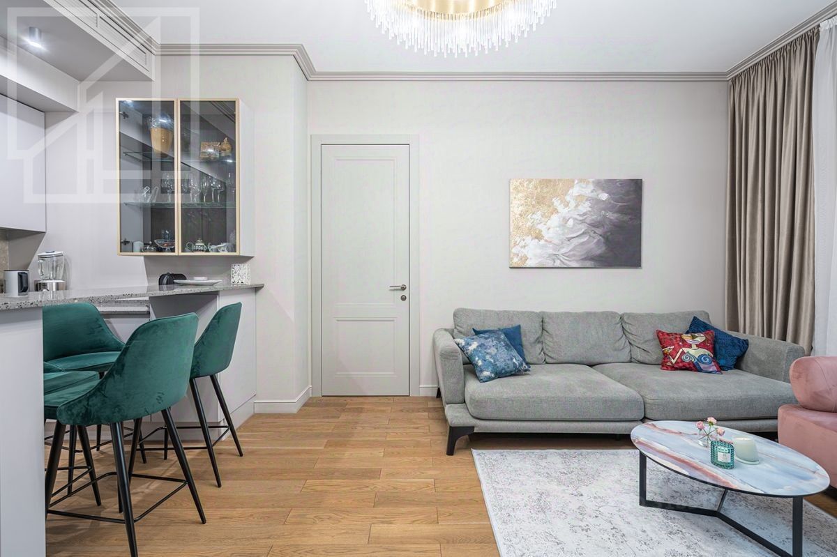 Планировка: мастер спальня со своим санузлом и гардеробной, вторая спальня, гостинная, объединенная с кухней, гостевой санузел. Потолки 3,1м. Квартира полностью меблирована и оснащена всем необходимым для комфортного проживания.