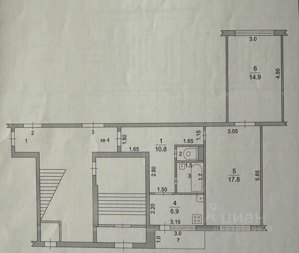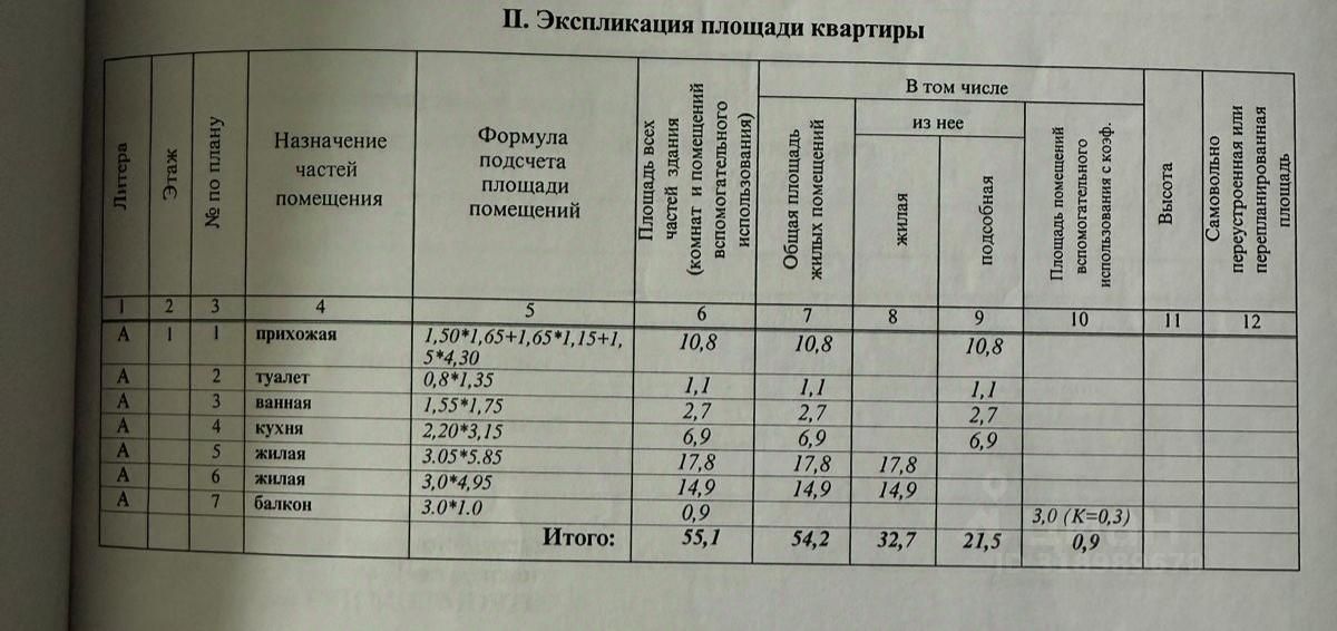 Квартира имеет продуманное распределение пространства: общая площадь составляет 54.2 квадратных метра, включая две комнаты общей площадью 32.7 квадратных метра и кухню площадью 6.9 квадратных метров. Жилые помещения хорошо освещены благодаря окнам, выходящим во двор. Наличие застекленной лоджии добавляет дополнительное пространство для отдыха и возможность наслаждаться видами окрестностей.