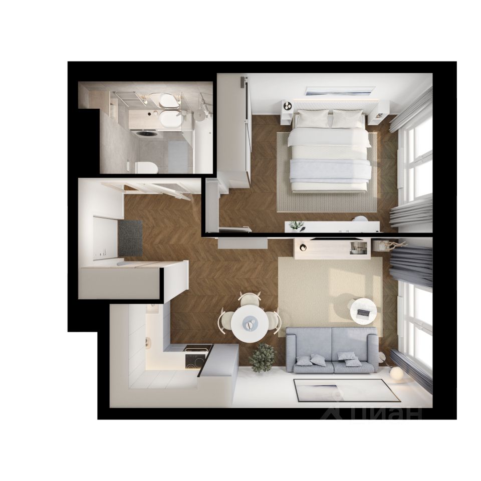 Квартиры продаются с предчистовой отделкой. Это значит, что к моменту получения ключей в доме уже закончатся самые грязные и шумные работы, а вам будет легче реализовать дизайнерские идеи.