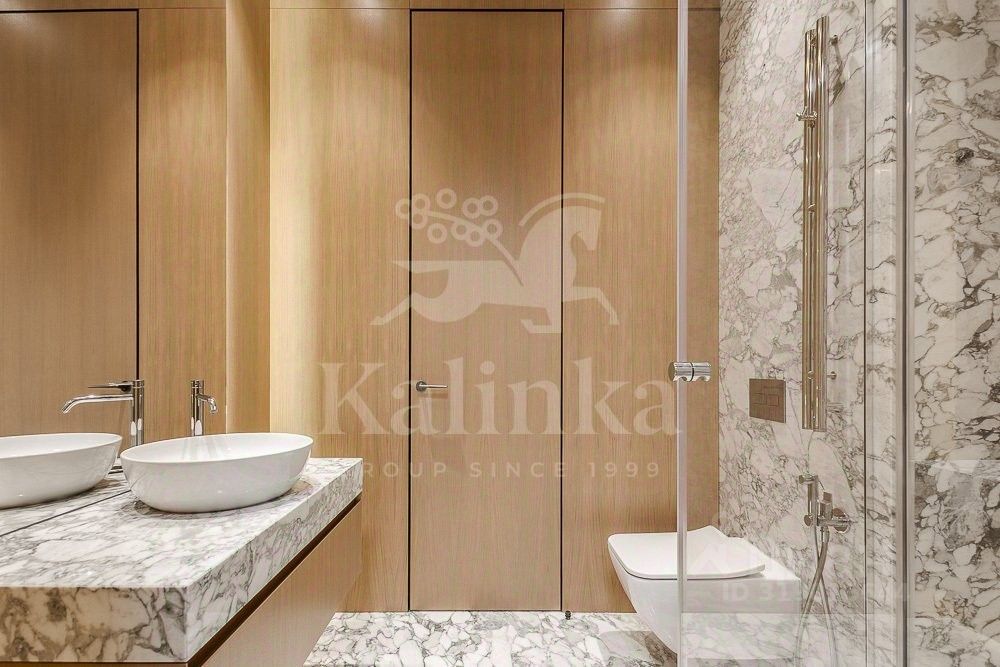 Особенности квартиры: Выполнен новый ремонт в современном стиле с использованием высококачественных материалов (натуральный камень, мрамор, стеновые панели из массива натурального дерева). Кухня-гостиная оформлена по дизайн-проекту, продумано всё до мелочей (фильтры для воды, морозильная камера, многоуровневое освещение, дизайнерская картина, люстра, светильники — всё выполнялось на заказ, встроенная техника Miele и Liebherr). Предусмотрено много места для хранения.