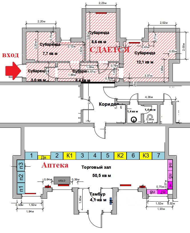 Сдается помещение площадью 37,8 кв.м. (кабинетная планировка -смотрите план и фото). Отдельный вход. Помещение освободим от аптечной мебели после нахождения арендатора. В арендную плату все включено. Рассмотрим все предложения, кроме общепита. Звонки принимаются в рабочие дни с пн-пт с 9.15 до 18.00.