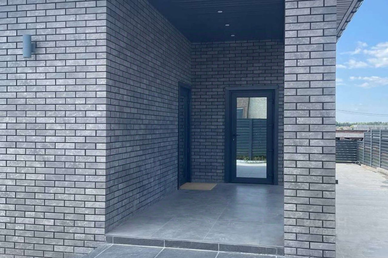 Дом из газосиликатного блока Bonolit, снаружи отделан термопанелями с клинкером Парадис, кровля металлочерепица производства Grandline, установлены пластиковые окна Rehau, установлено внешнее освещение дома.
