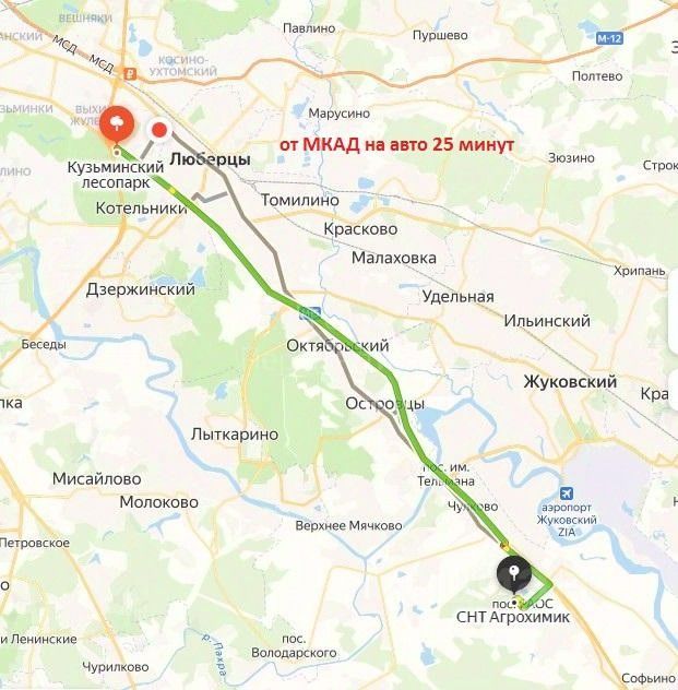 Также можно добраться на общественном транспорте: - от метро Котельники на автобусе (~ 40 мин) - от МЦД-3 Отдых (Жуковский) на маршрутке (~35 мин)