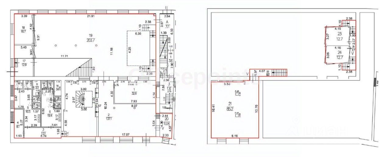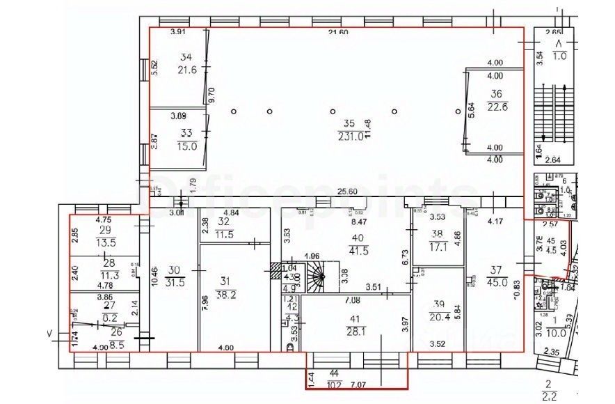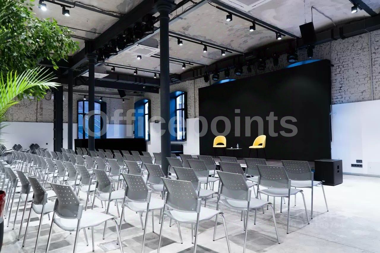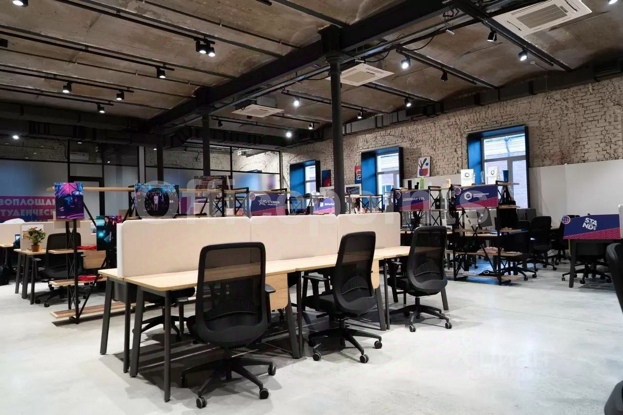 В помещении стандартная отделка, открытая планировка, арочные окна, сводчатые потолки. Центральная система кондиционирования и приточно-вытяжная система вентиляции. В наличии наземная парковка (15 000 руб. в месяц за м/место).