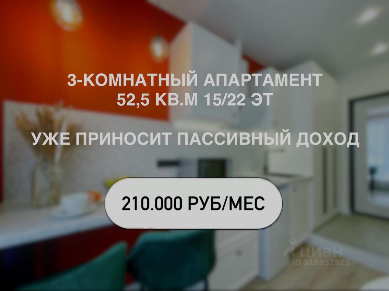 ПРЕИМУЩЕСТВА апартамента: прекрасный вариант для инвестиции, не требует никаких дополнительных вложений, уже заселен арендаторами, этот объект уже приносит пассивную ежемесячную прибыль 210.000 рублей.