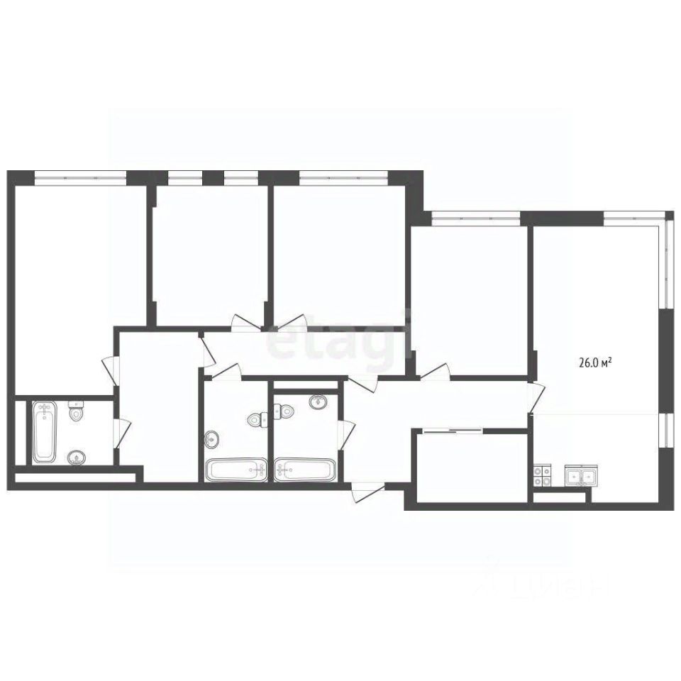 - Простор и комфорт:Общая площадь 134 м², жилая 78 м² и кухня 26 м². Эта квартира идеально подойдёт для большой семьи, обеспечивая каждому члену своё пространство. Гибкая планировка: Возможность создать 5 изолированных комнат позволяет вам организовать пространство именно так, как вам удобно, будь то детская, кабинет или гостевая.