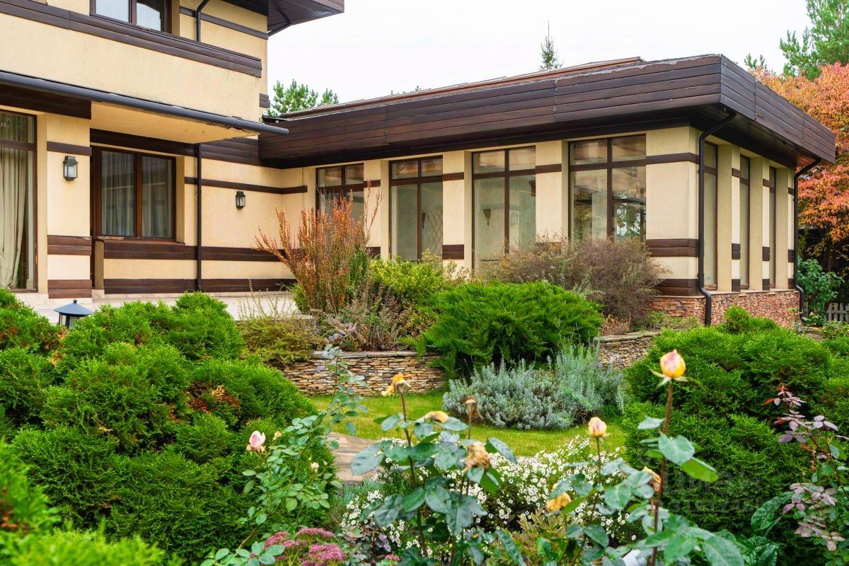 Дом расположен на ухоженном живописном участке 39 соток с прудом, беседкой, детской площадкой. Сад с красивым ландшафтом, цветниками, соснами, яблонями, зеленой лужайкой, множеством разнообразных растений, здесь более 230 сортов сирени, которая наполняет сад прекрасным ароматом весной. Здесь можно наблюдать смену времен года, любуясь всеми красками природы.