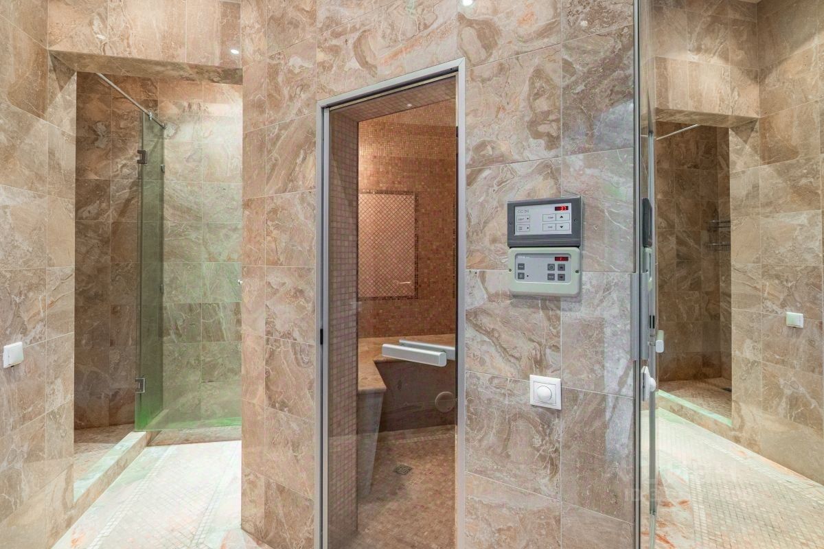 Планировка: 1этаж: просторная прихожая, две сезонных гардеробных, гостиная с выходом на террасу, столовая, отдельная кухня, зимний сад, кабинет, гостевая спальня, санузел с душем, СПА комплекс с бассейном и хаммамом, комната для игры в бильярд, постирочная, выход в гараж,