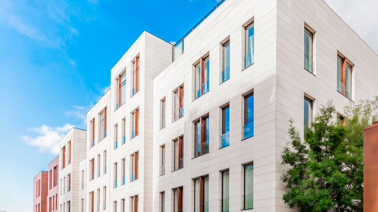 Главное о доме: тихий современный квартал высотой до пяти этажей. На этаже всего две квартиры. Во дворе каскадный двор-сад с вишнёвыми деревьями, сухим фонтаном, зонами отдыха и детской площадкой.