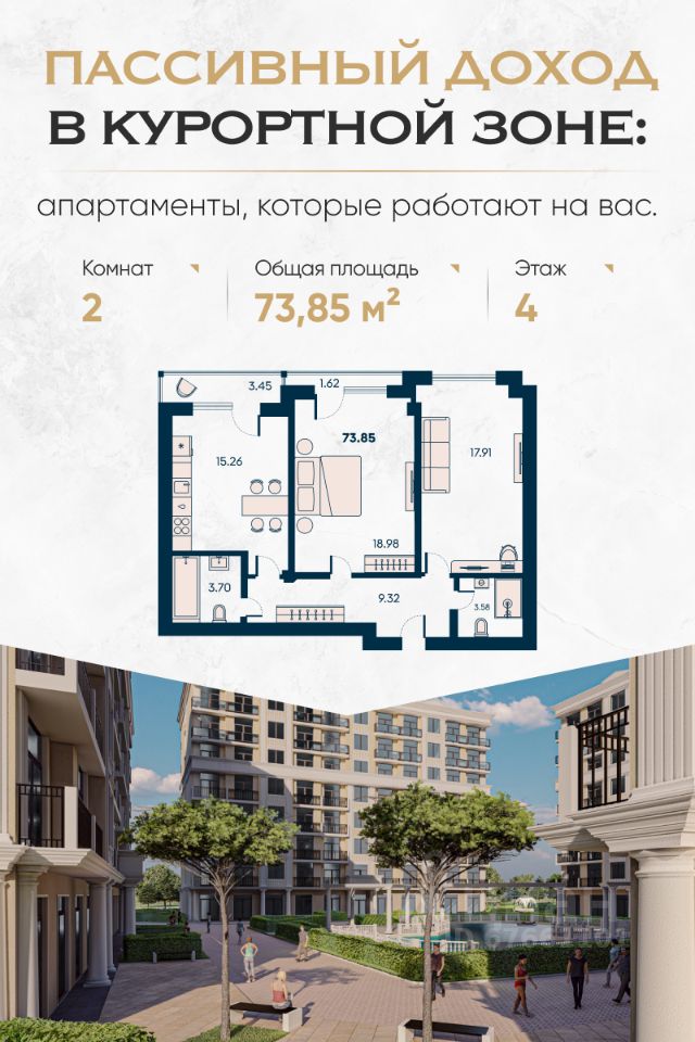 Апартаменты у моря Новая Керкинтида с гарантированной доходностью и рассрочкой. Надёжный способ сохранить капитал и получать пассивный доход — курортная недвижимость на первой линии у моря. Апарт-комплекс в экологически чистом районе Евпатории — это инвестиция, которая работает круглый год. Главные преимущества: Первая береговая линия Гарантированный пассивный доход Возможность отдыха в собственных апартаментах Рассрочка до 90% — без переплат Безопасная сделка через эскроу-счёт Почему это выгодно: Район с высоким спросом на аренду — Евпатория стабильно входит в топ направлений семейного и оздоровительного туризма. Цены на курортную недвижимость в Крыму растут — вы успеваете купить до следующей волны удорожания. Формат ''отдых плюс доход'' — апартаменты можно сдавать через управляющую компанию или использовать самостоятельно. Полностью готовая среда — магазины, кафе, рестораны, прогулочные зоны, ландшафтный парк, двор без машин, спортивные и детские площадки. Вид на море уже с 4 этажа — ощущение курорта не только в инфраструктуре, но и в каждом окне. Для спокойной старости или будущего семьи: Комплекс подойдёт тем, кто хочет иметь надёжный резерв на случай любых сценариев — для себя, детей, внуков или просто как подушку безопасности. Срок сдачи: IV квартал 2026 года. Покупка без скрытых комиссий, с понятной рассрочкой и прозрачными условиями.