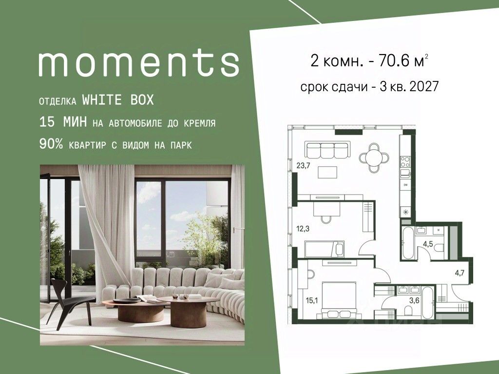 Moments — ЖК бизнес-класса, расположен на расстоянии вытянутой руки от старинного усадебного парка Покровское-Стрешнево. Moments — это единение города и природы, дом, который помогает обрести гармонию и баланс в жизни.