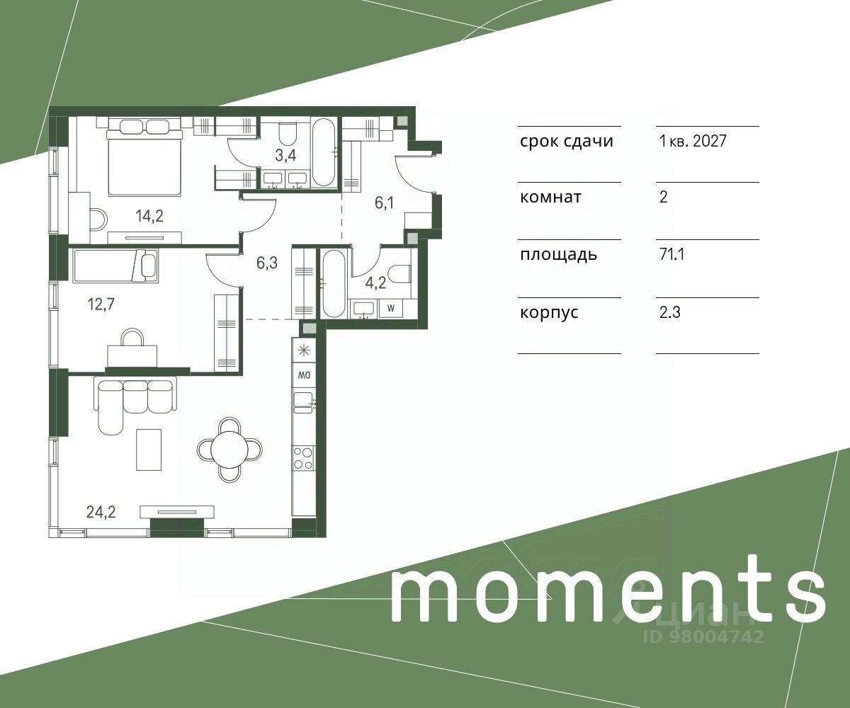 продам 2-к, Моментс ЖК, 2.136 007 884 ₽
