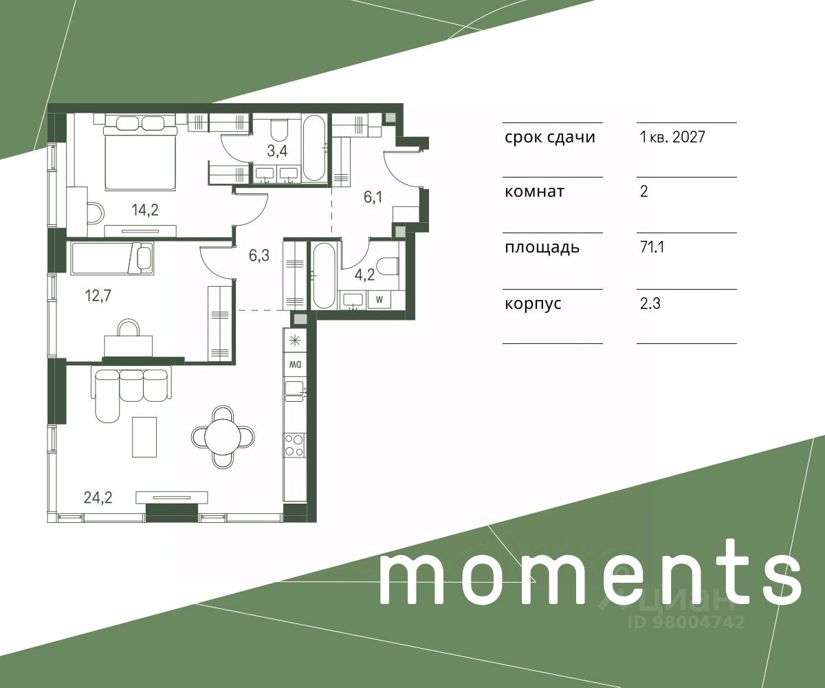 продам 2-к, Моментс ЖК, 2.137 814 179 ₽