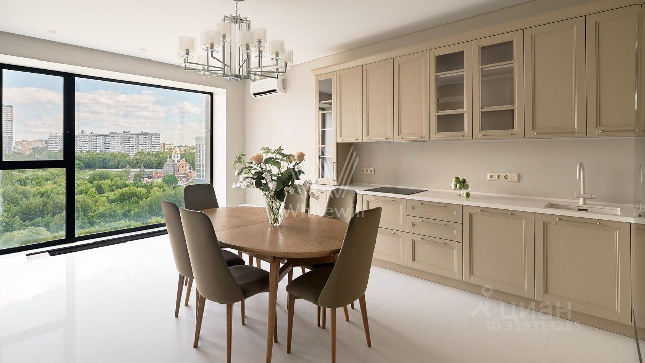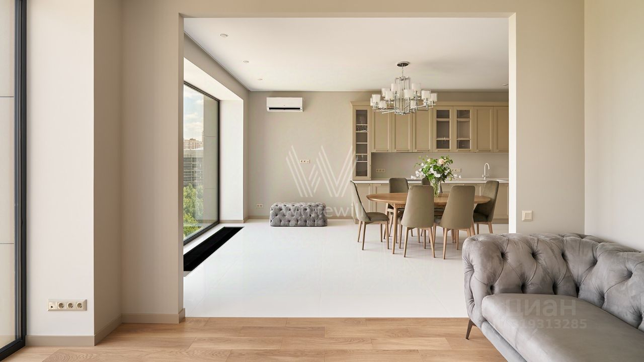 Высокие потолки, панорамные окна, много естественного света. Открываются живописные виды на город, МГУ и в тихий двор. Планировка: кухня-гостиная, основная спальня со своей ванной комнатой, угловая спальня, санузел с душем, гардеробная, холл. Гостиная и основная спальня укомплектованы мебелью. Установлена кухня со встроенной техникой Smeg и обеденной зоной. Предусмотрена система кондиционирования . Есть возможность покупки машиномест в подземном паркинге, а так же кладовых помещений.