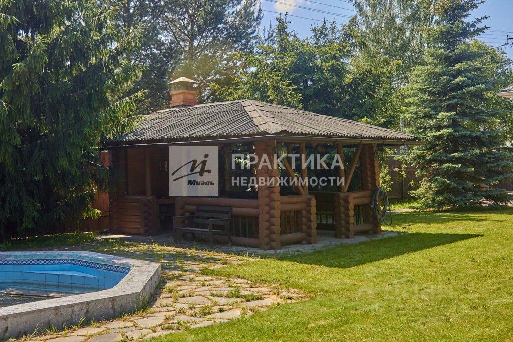 Беседка из бруса с мангалом. Летний бассейн. Детский спорткомплекс. Много садовых плодоносящих деревьев и кустарников.
