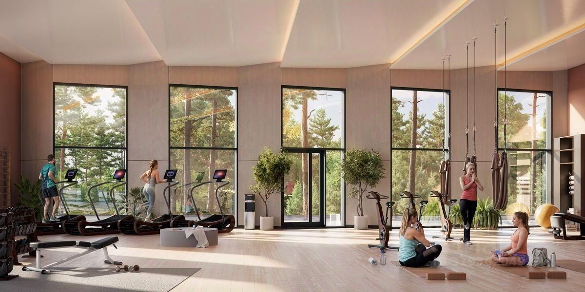 Инфраструктура: -Благоустроенная территория с прилегающей лесополосой -Прогулочный бульвар с кафе и ресторанами -Природный коворкинг в окружении леса -На первых этажах офисных зданий просторные лобби с комфортной зоной ожидания, супермаркет, торговые помещения, отделения банков и сервисных служб, фитнес-студия -Охраняемый наземный паркинг -Зарядные станции для электромобилей