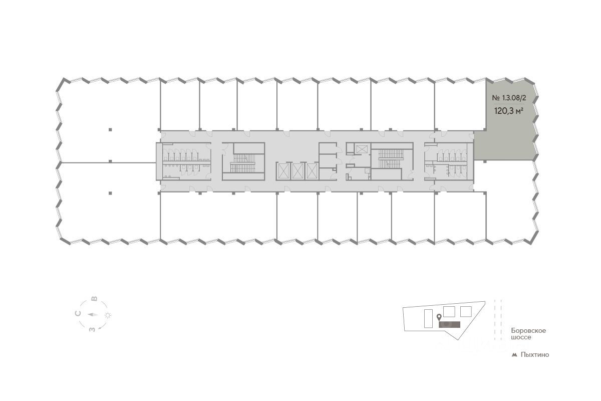 -Офисное помещение 120,3 м² на 3 этаже (корпус 1) -Панорамное остекление -Отделка shell and core -Высота потолков 3,8 м -Шаг колонн 8,1 м * 8,4 м