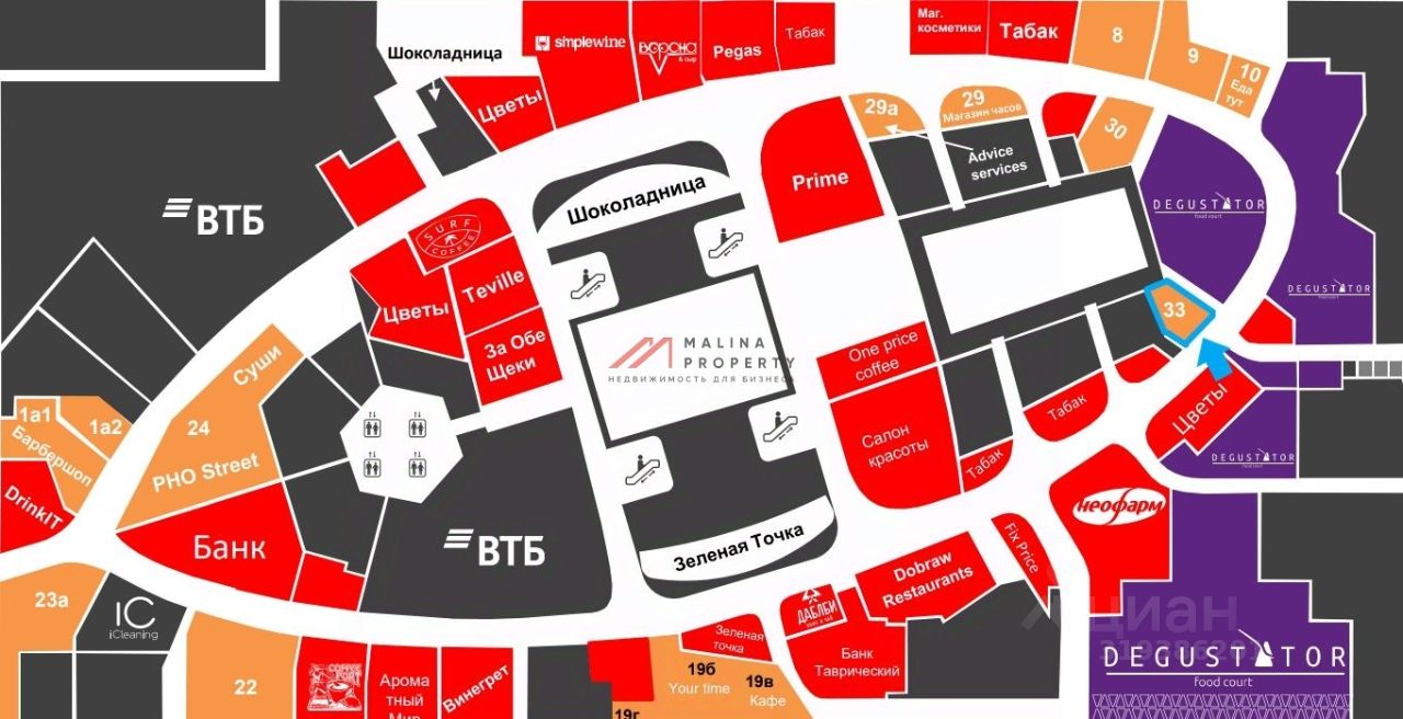 Помещение располагается в стилобатной части Башни ''Федерация''. Целевая аудитория более 50 тысяч человек в сутки. Огромный транзитный человекопоток. Башня объединена переходами через торговые галереи на уровне минус первого этажа с башнями Евразия, Меркурий, IQ - квартал, Башня на Набережной, Город Столиц, Империя, Торговый Центра Афимолл-сити.