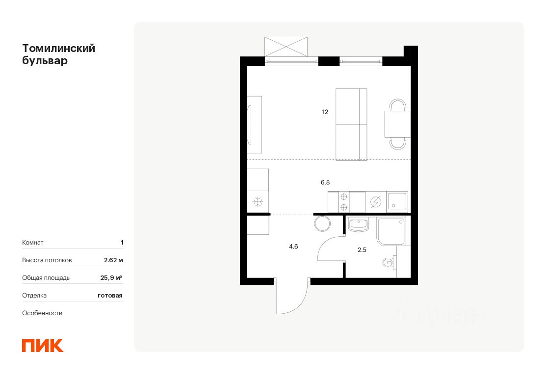 Общая площадь25,9 м2