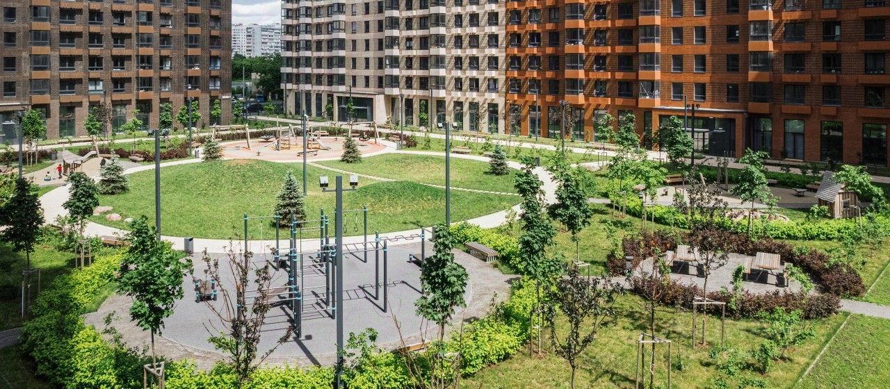 На территории квартала будут построены 22 дома, две школы, поликлиники и пять детских садов. Один из центральных элементов проекта — широкий пешеходный бульвар, где мы создали пространства для спорта, прогулок и отдыха.