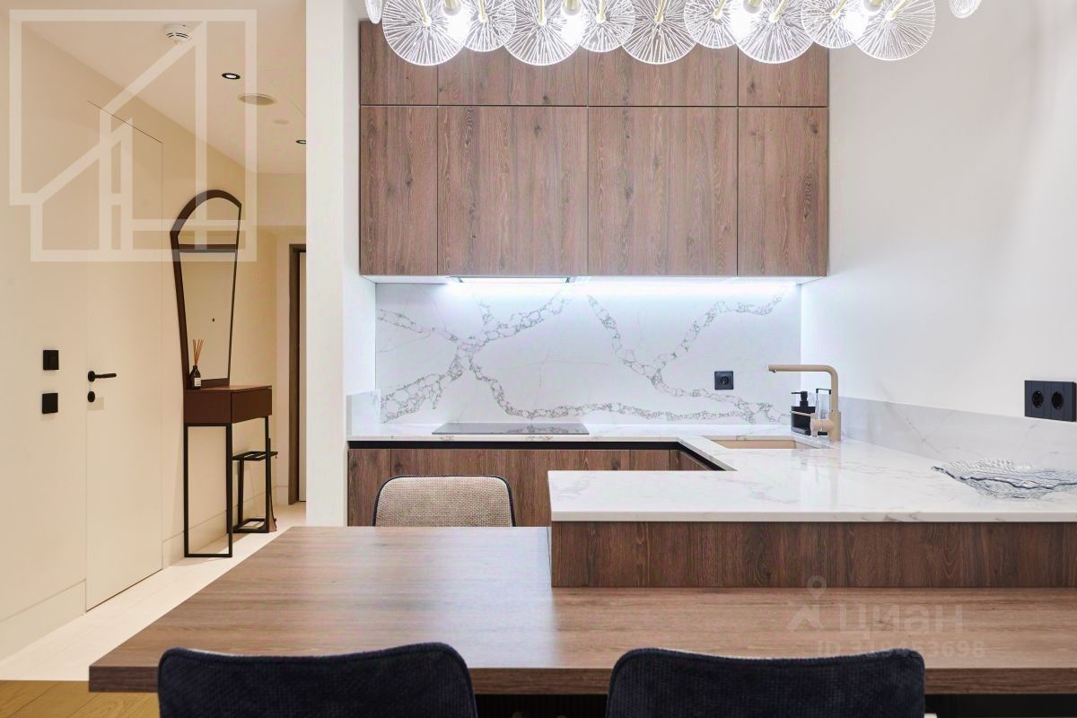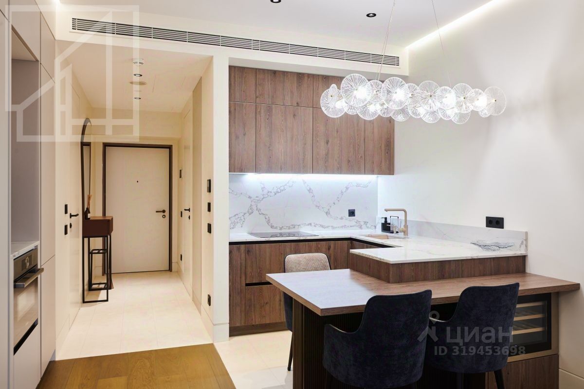 Планировка: гостиная-кухня, мастер-спальня со свои санузлом и гардеробной, гостевой санузел, постирочная. Потолки 3 м. Панорамный вид из окна. Ремонт выполнен в современном стиле. Квартира полностью меблирована и оснащена всем необходимым для комфортного проживания. Охраняемая территория. Консьерж.