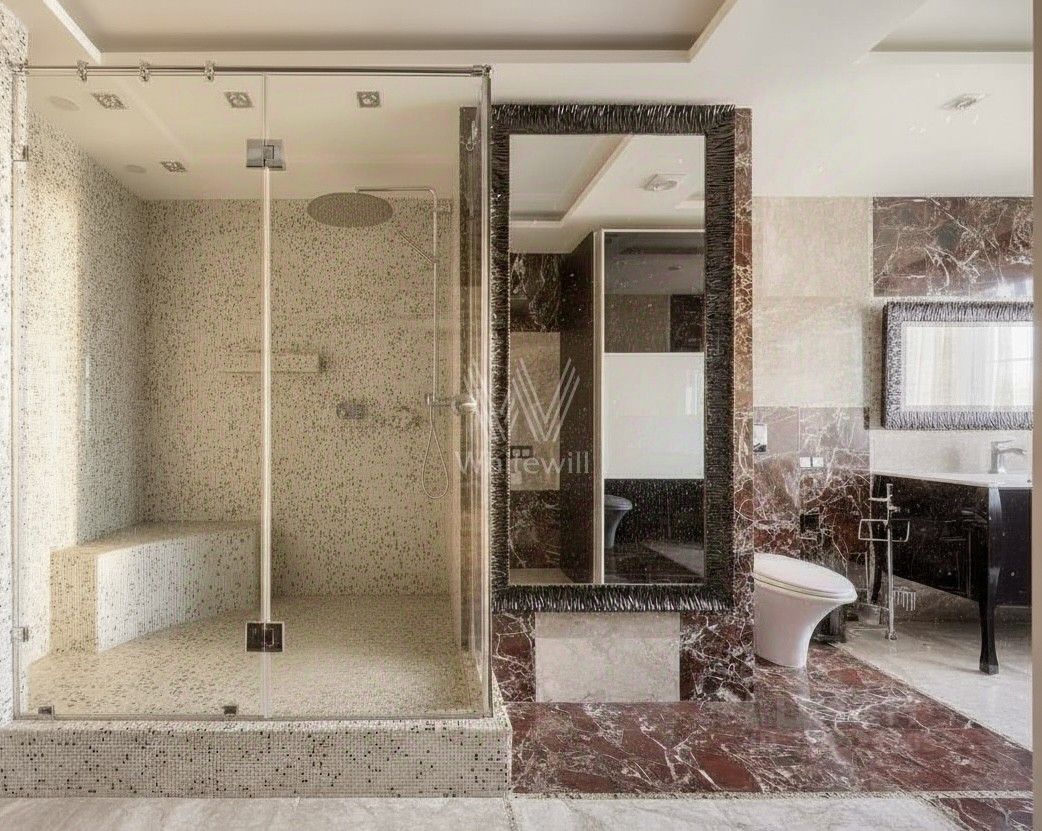 Установлена система индивидуального кондиционирования. Функциональная планировка включает гостиную, кухню-столовую, мастер-спальню со своим санузлом, две спальни, санузел, постирочную, шесть балконов и прихожую. Окна ориентированы на две стороны света, открываются виды на город.