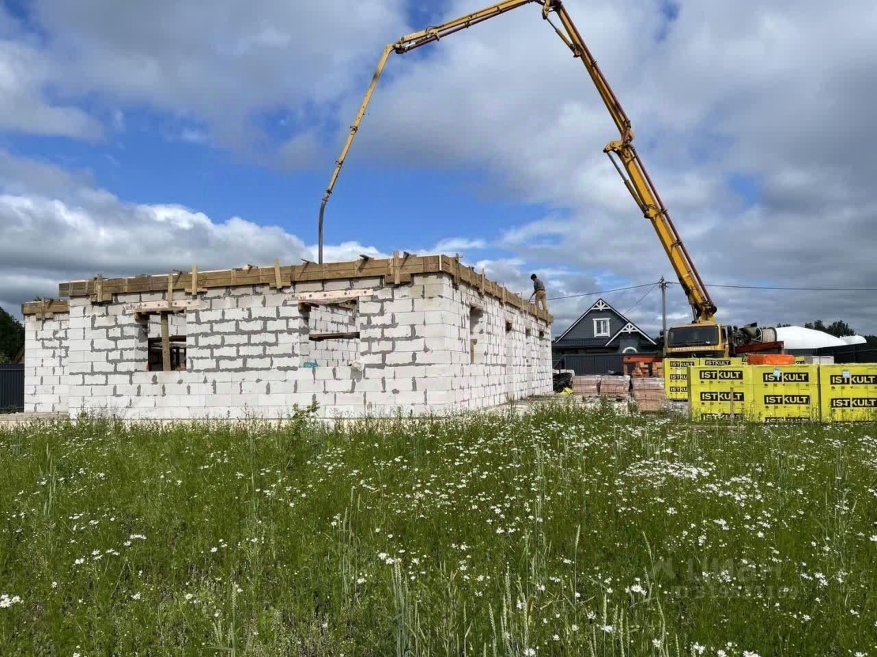 Одноэтажный Дом с 5-тью спальнями + кухня-гостинная. Строился согласно проекту дома Фундамент в 2024г., стены возвели весной 2025г.