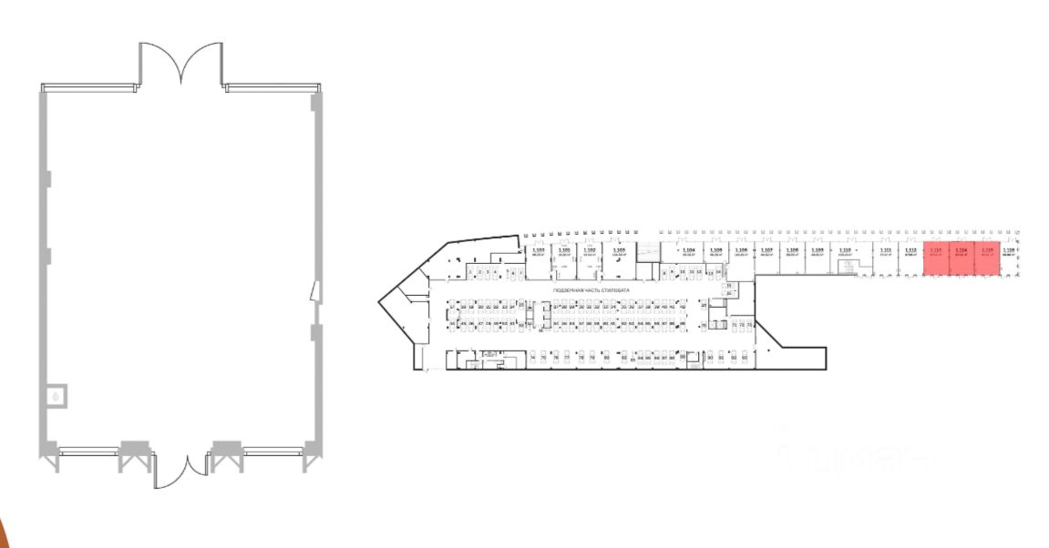 Объект с открытой планировкой площадью 88 м² расположен на 1-м этаже в бизнес-центре