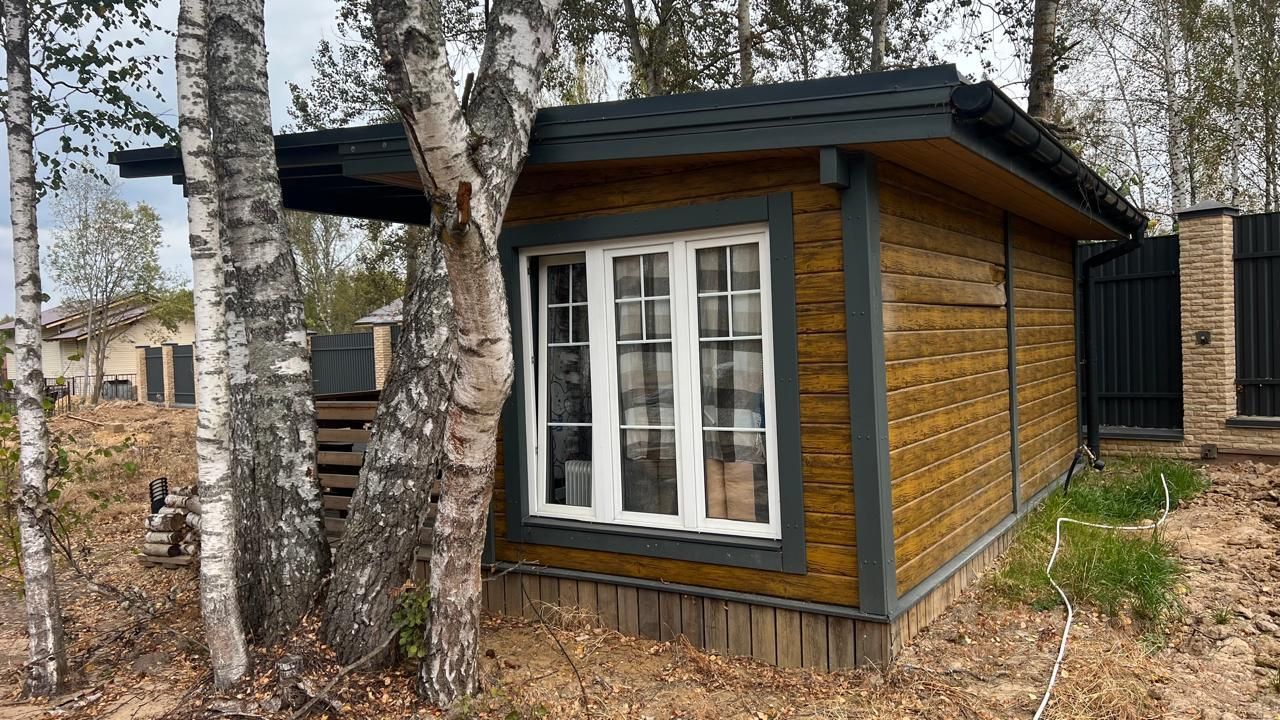 Благоустроенный участок 25 соток в живописном коттеджном поселке с возможностью заключения договора подряда на строительство капитального дома. Заведены коммуникации: вода, электричество, центральная канализация, газ на границе. На участке построен функциональный гостевой домик 31 м2, подключенный ко всем коммуникациям. Домик утепленный каркасный (150мм), теплый пол, мягкая кровля, крытая терраса 18 м2, спальня, полностью оборудованная кухня и с/у, заведено оптоволокно, интернет. Участок огорожен - забор бетонный ростверк, профлист, колонны выложены клинкерным камнем. Территория посёлка огорожена, на въезде круглосуточная охрана. На территории поселка асфальтированная дорога, спортзал, прудик, детская площадка.