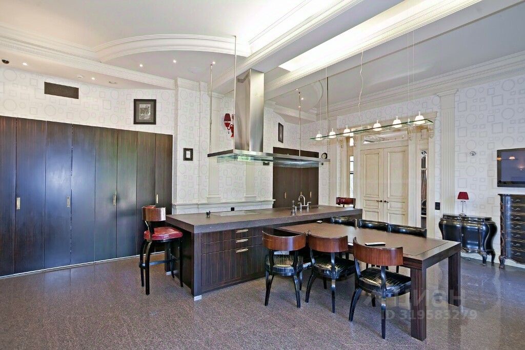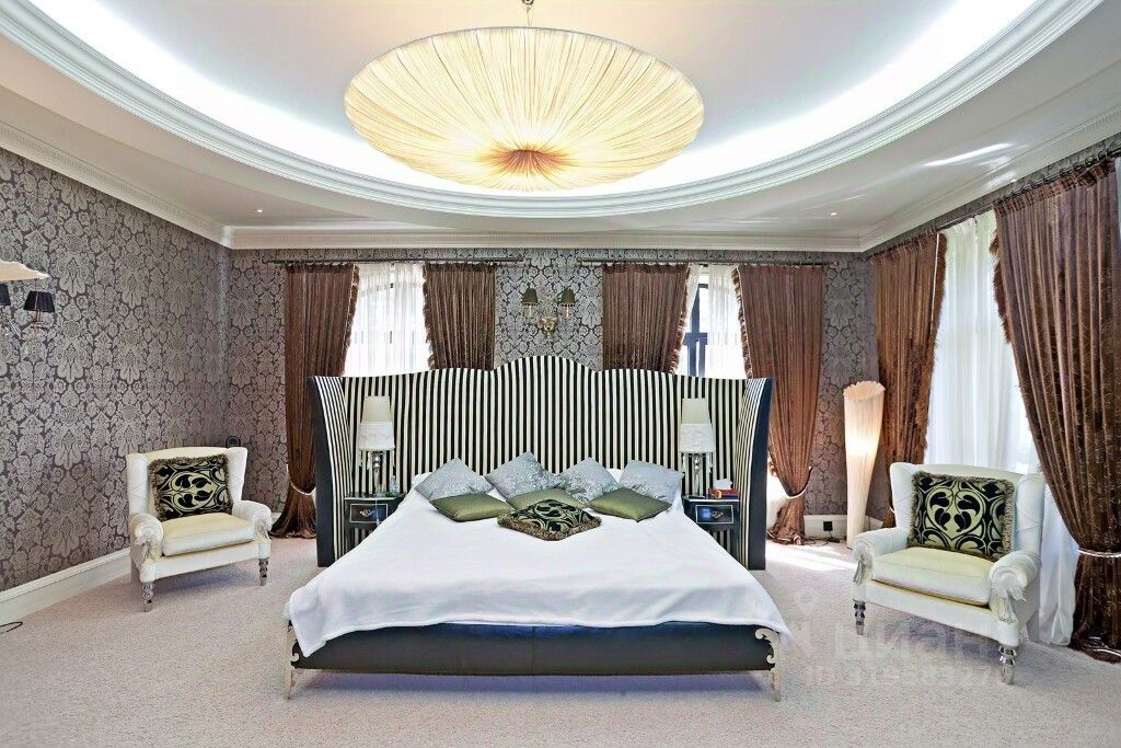 Состав помещений: Цоколь: бар, бильярдная, кинозал, комната для персонала, постирочная, с/у. 1-й этаж: прихожая с гардеробной, холл, каминный зал со вторым светом и выходом на веранду, гостиная-столовая, кухня, кабинет, с/у, СПА-комплекс: бассейн с зоной отдыха, сауна, с/у, тренажерный зал. 2-й этаж: холл, мастер-спальня с гардеробной и ванной комнатой, спальня с гардеробной и с/у, 2 гостевые спальни, с/у, библиотека. Мансарда: 2 спальни с с/у, кинозал.