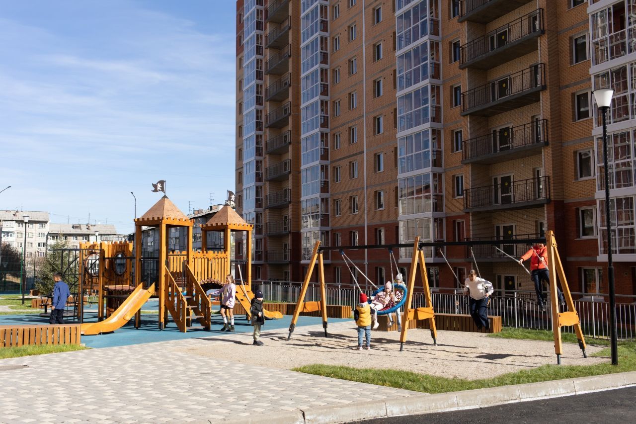 Во дворе современные детские площадки, места для отдыха, спортивная площадка и площадка воркаут.