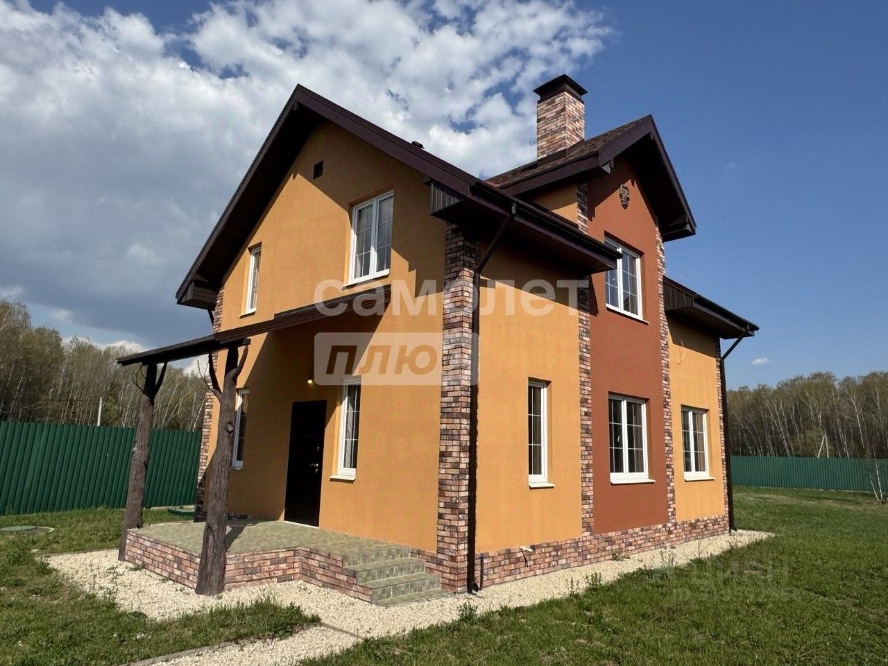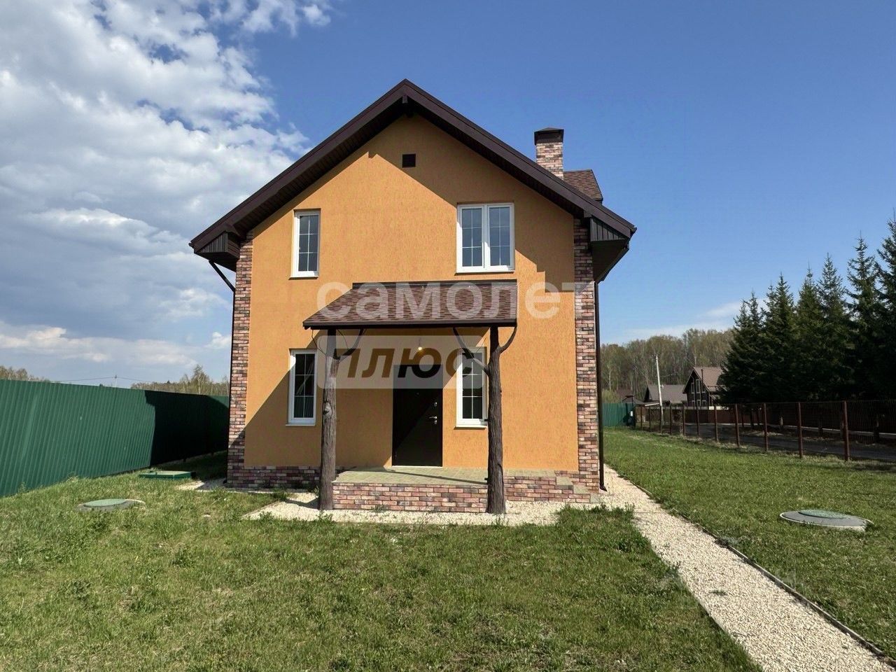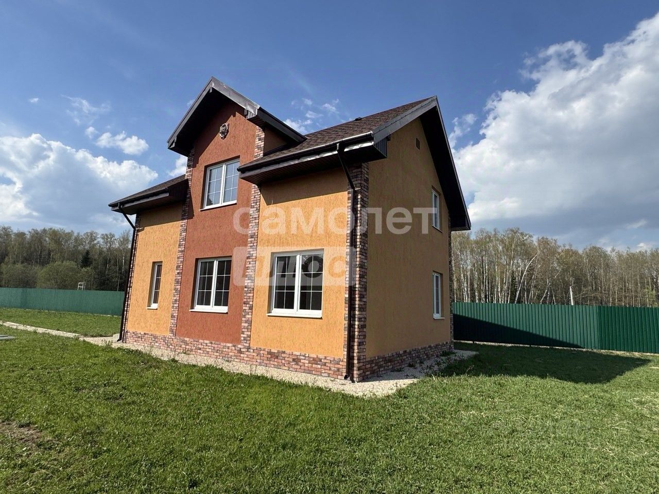 Кухня-гостиная совмещены. В кухне сделан фартук из плитки, выведены все коммуникации. Теплый пол в холле и санузлах. Везде установлены датчики управления. Первый этаж: холл, бойлерная, большая кухня-гостиная, спальня, санузел с душем. Второй этаж: 3 спальни, санузел с ванной. Фундамент- монолитная плита со сваями. Перекрытия из плит, стены и перегородки из пеноблока (высокие потолки на 1 и 2 этаже) Крыша- мягкая кровля. По границе проведен газ.