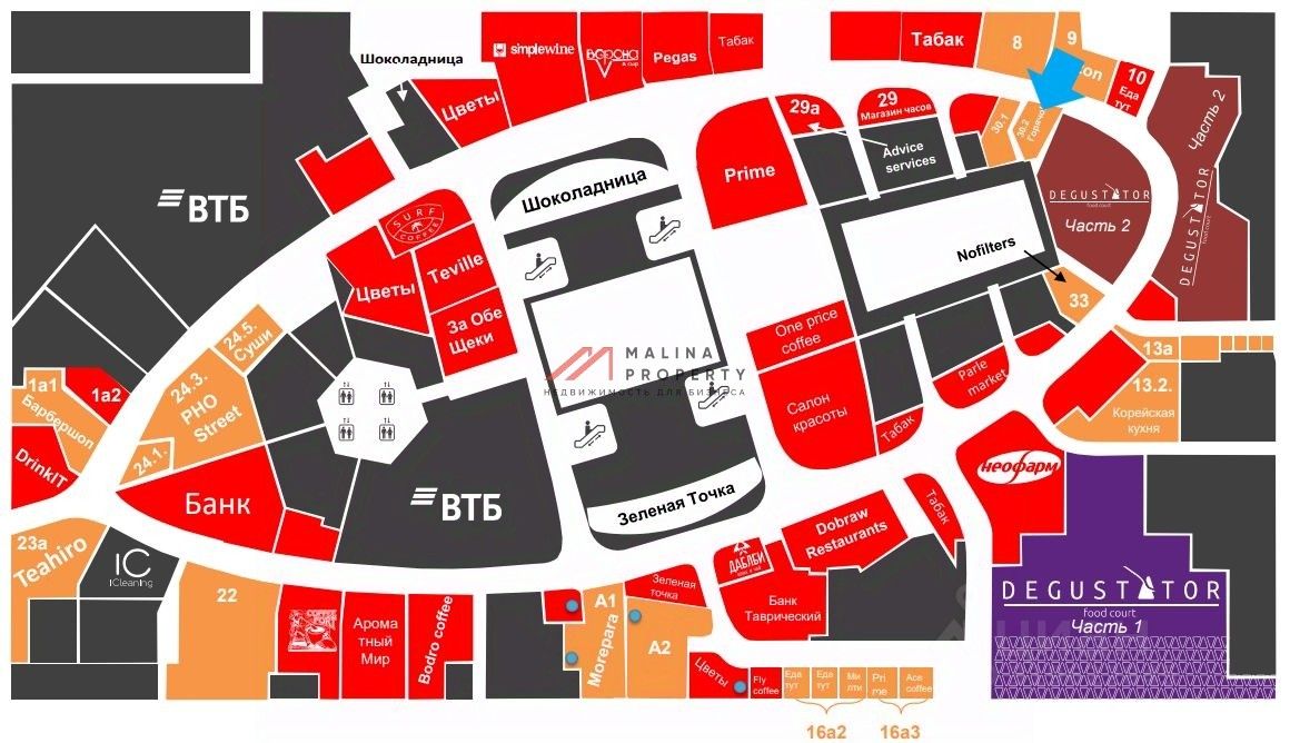 Помещение располагается в стилобатной части Башни ''Федерация''. Целевая аудитория более 50 тысяч человек в сутки. Огромный транзитный человекопоток. Башня объединена переходами через торговые галереи на уровне минус первого этажа с башнями Евразия, Меркурий, IQ - квартал, Башня на Набережной, Город Столиц, Империя, Торговый Центр Афимолл-сити.