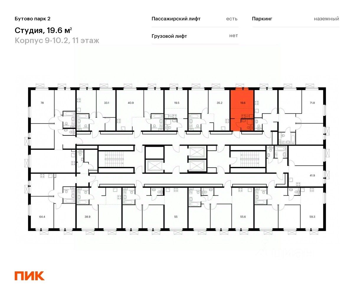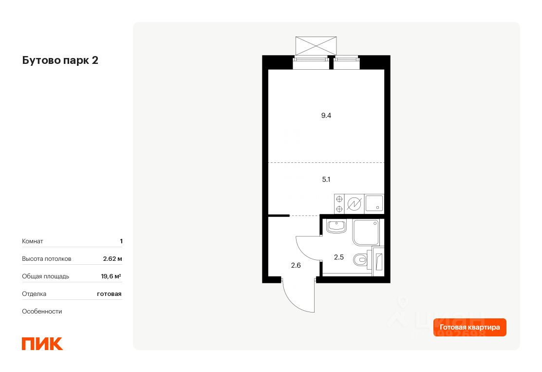 Продаётся квартира-студия площадью 19,6 кв.м на 11 этаже 25 этажного дома (Корпус 9-10.2, Секция 1) проекта ПИК Бутово парк 2. Светлый просторный подъезд на уровне земли, функциональная планировка, большие окна, c отделкой.