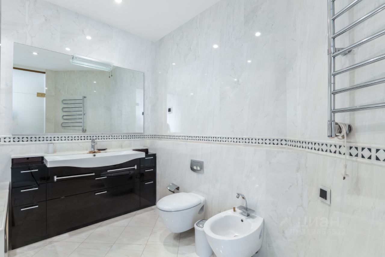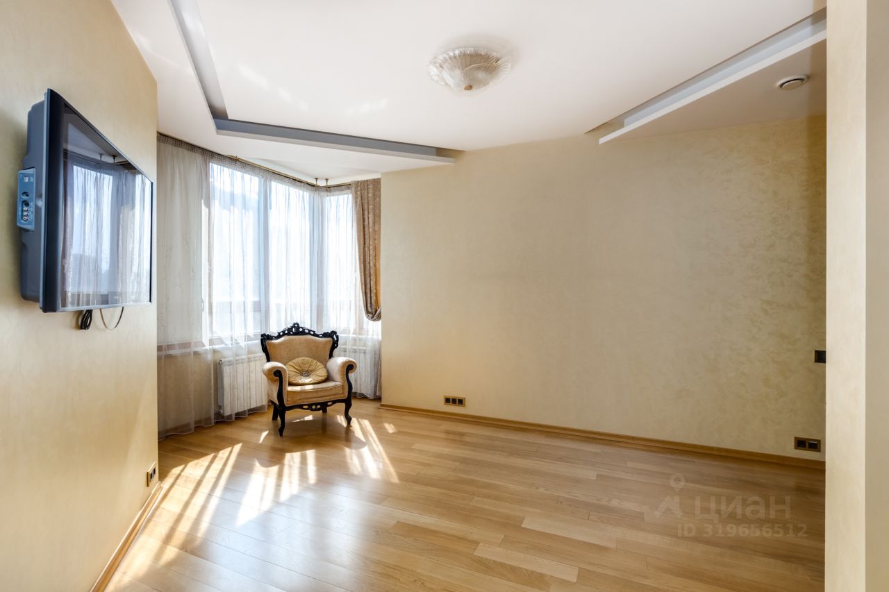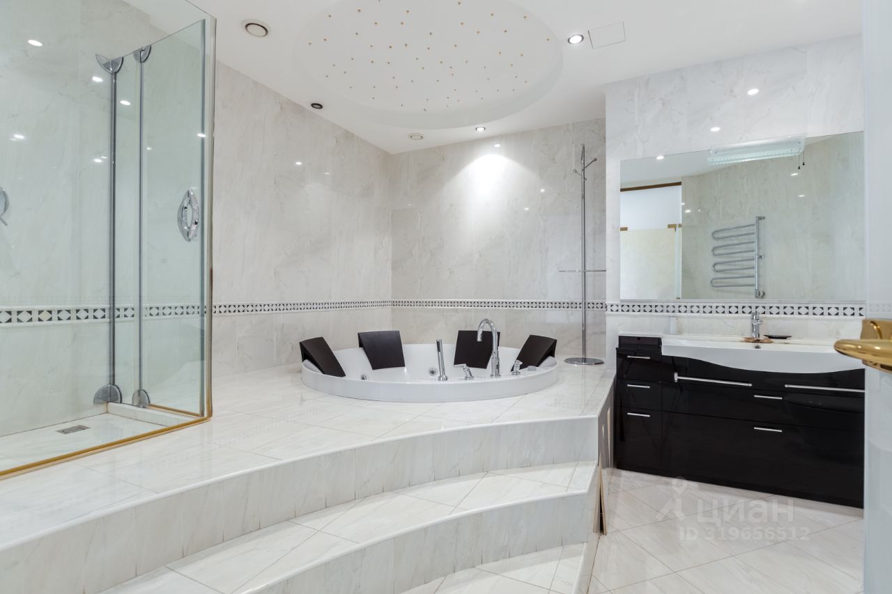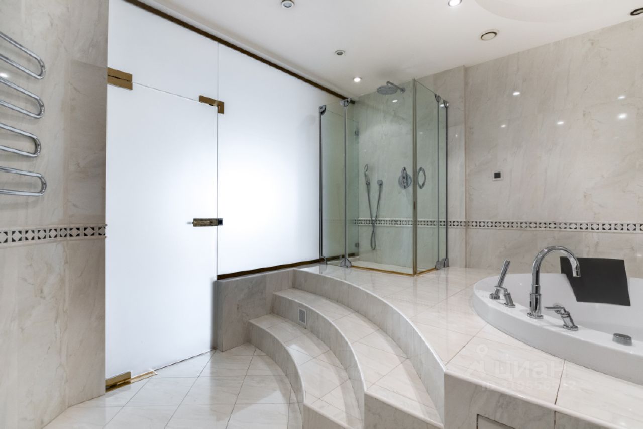 В квартире продуманная планировка, предусмотрены: большая гостиная 54 кв.м, кухня, две мастер-спальни с гардеробной комнатой, спальня, кабинет, три санузла, две лоджии. Огромное пространство для воплощения всех своих идей.