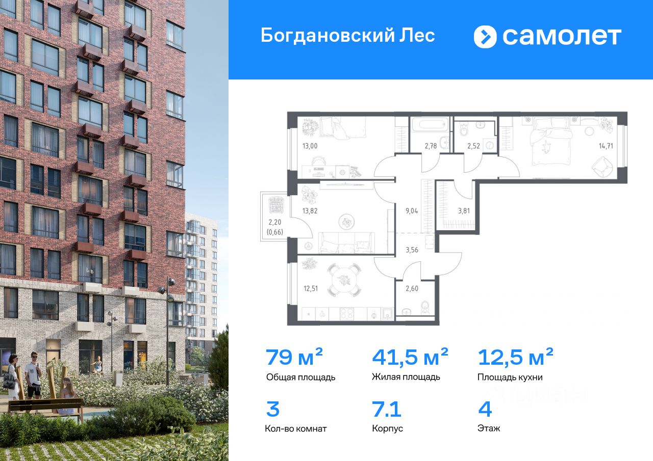 Предлагается 3-комнатная квартира комфорт-класса 79,01 кв.м в корпусе 7.1 на 4 этаже, в ЖК ''Богдановский Лес'' Квартира без отделки. Доступность опции ''отделка'' и возможность комплектации мебелью и декором уточняйте у застройщика.