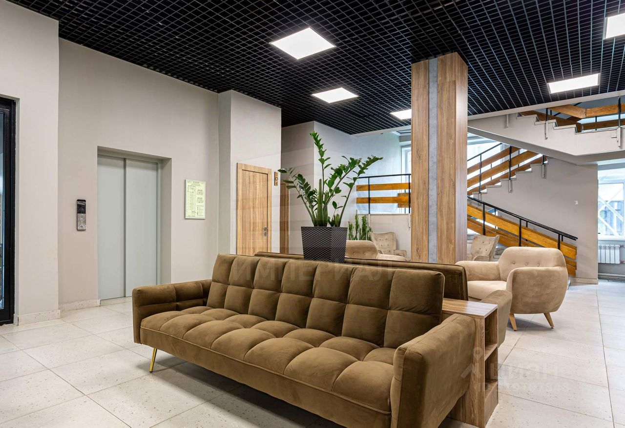 Внутри выполнена стильная отделка в светлых тонах с использованием современных материалов, установлены новые инженерные коммуникации и противопожарная сигнализация. Помещение отлично освещено за счет высоких панорамных окон, высота потолков — до 4 метров.