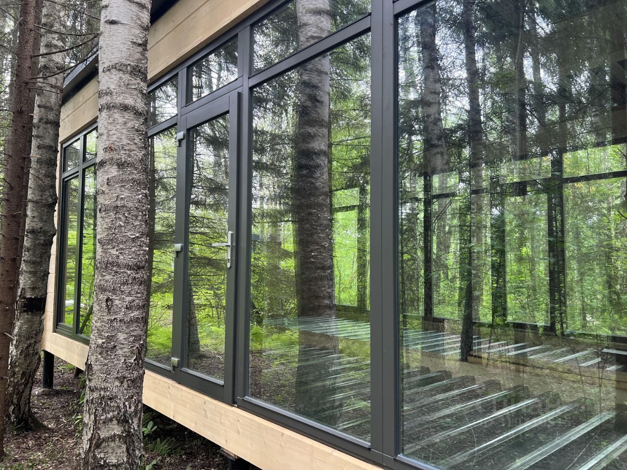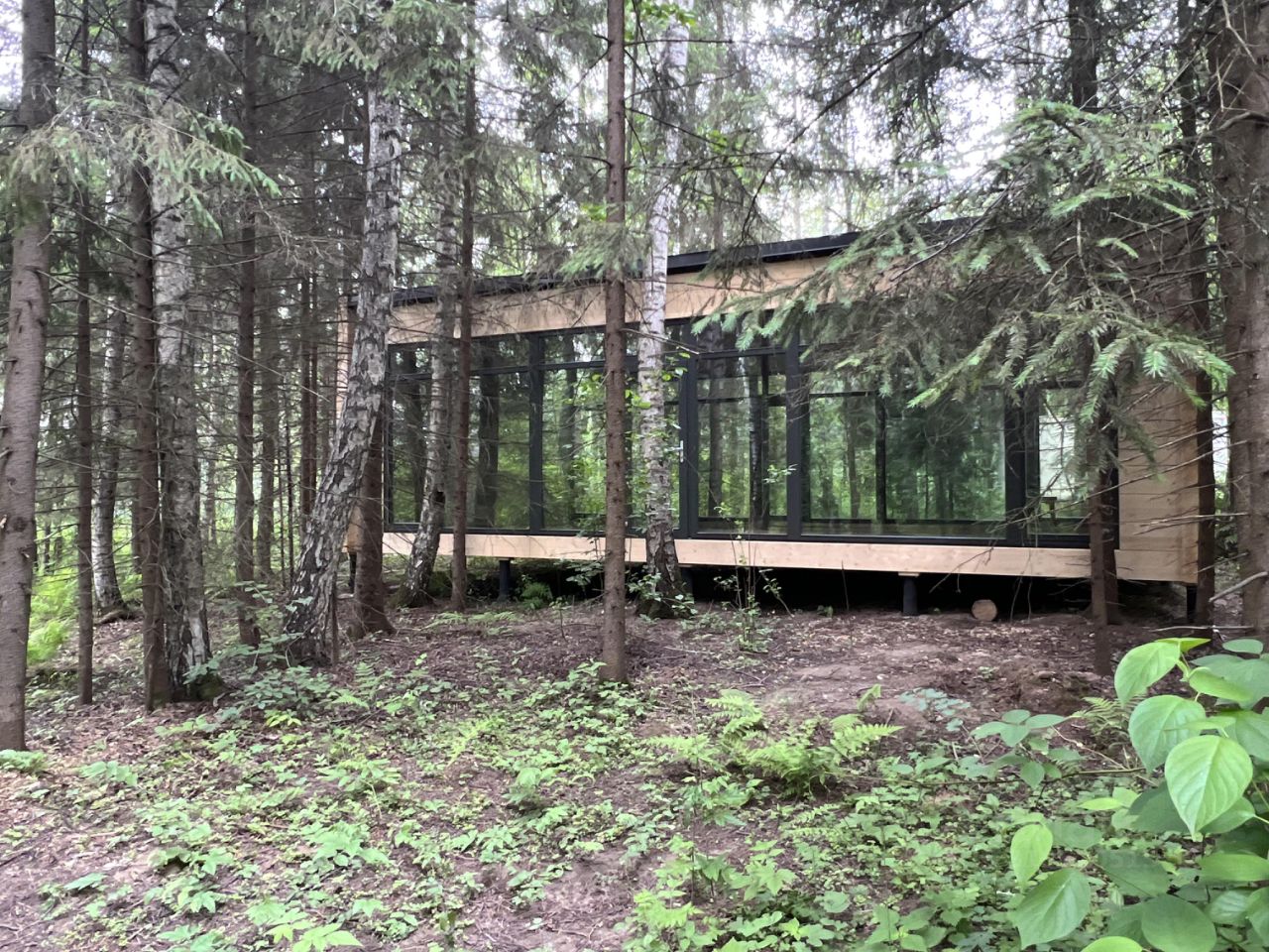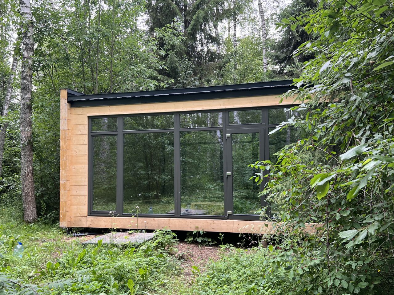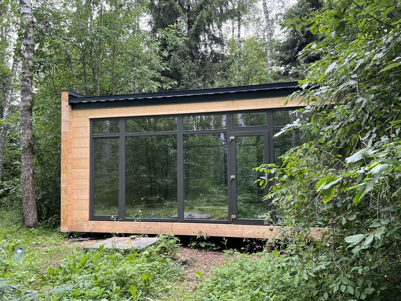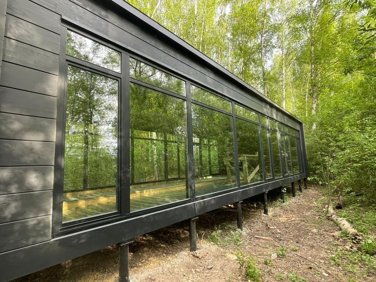 Дом из высококачественного клеёного бруса с панорамным остеклением.