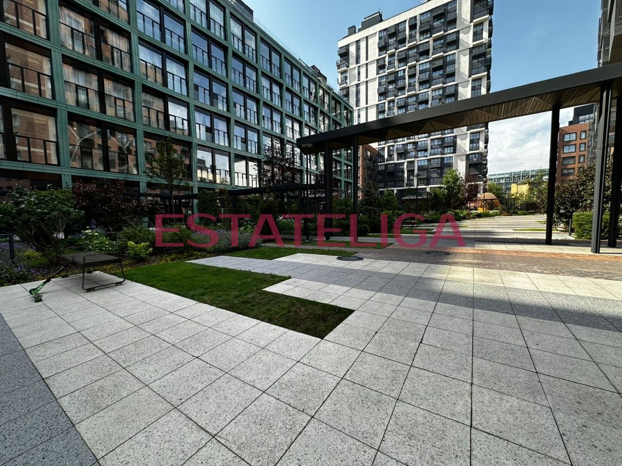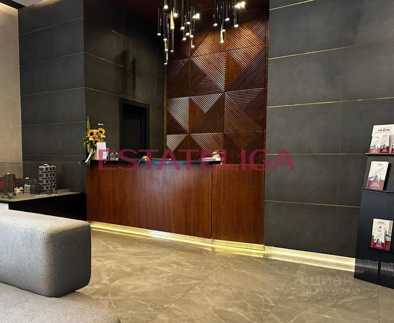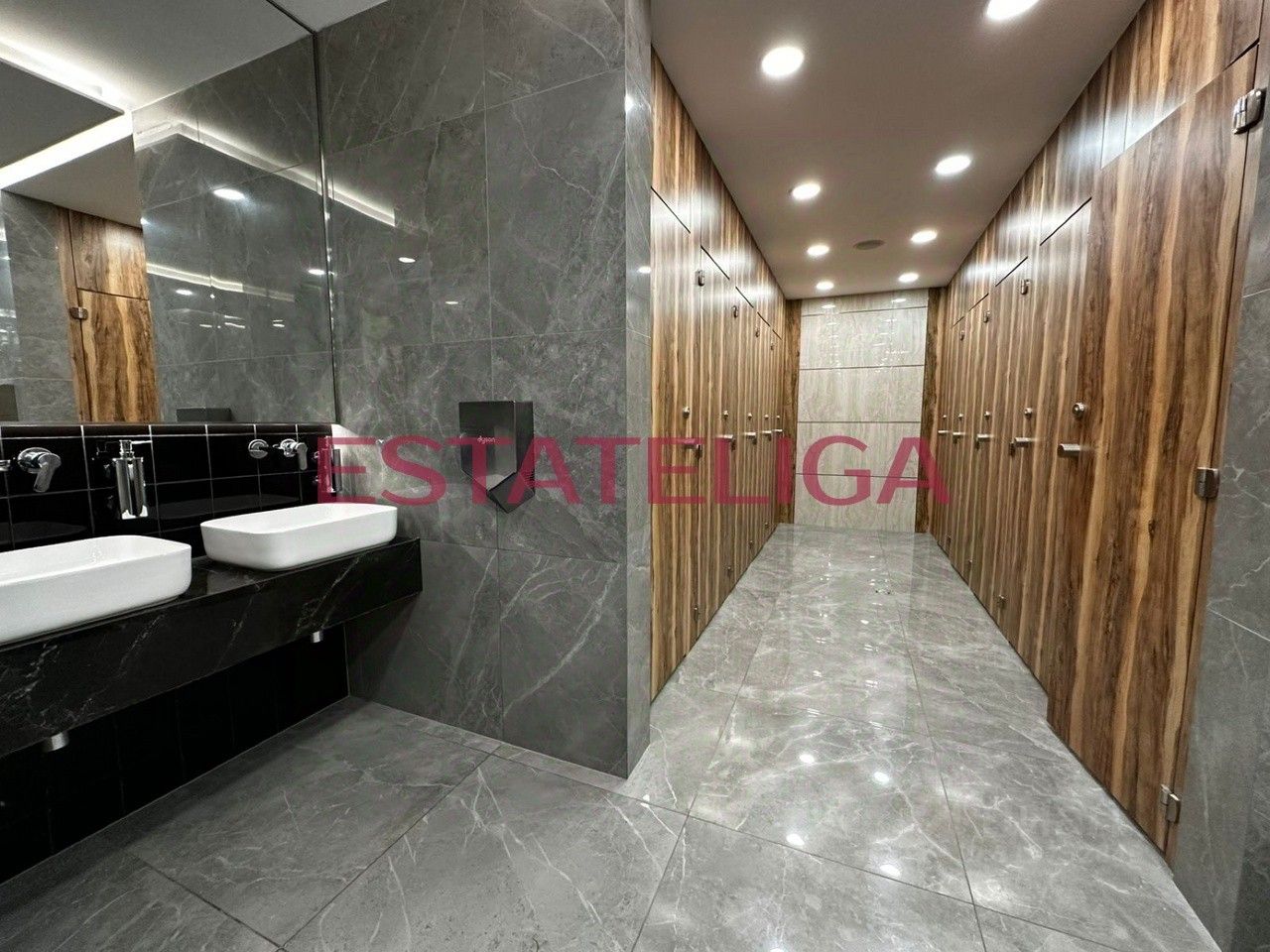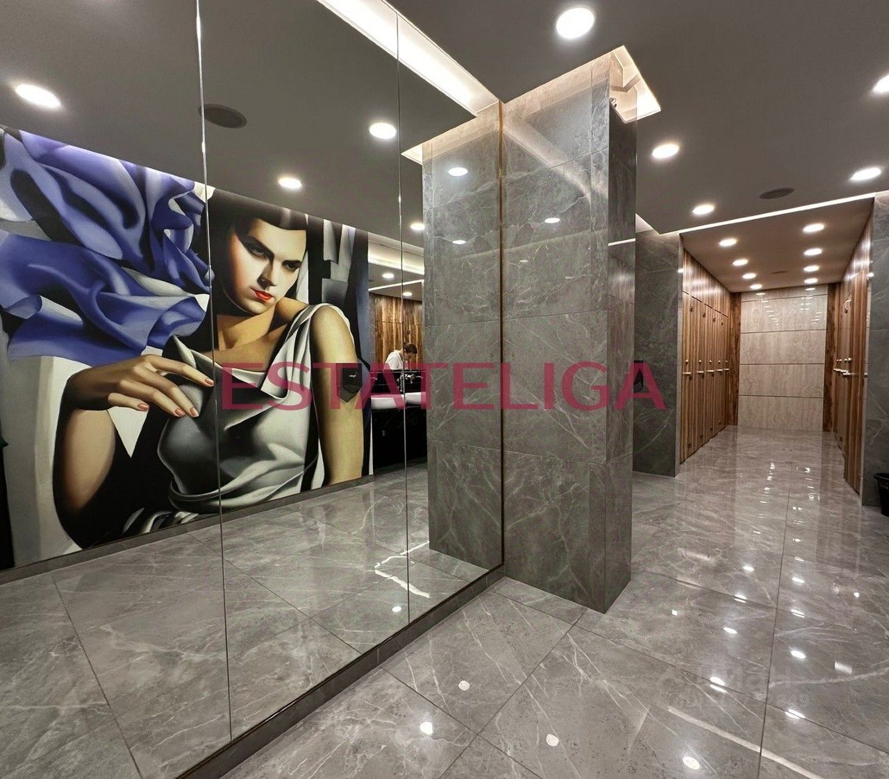 В отделке лобби и широких коридоров использованы травертин, латунь, дерево и декоративные панно в стиле американского реализма. На первом этаже делового центра 7500 кв. метров отведено под торговую галерею. Здесь размещаются рестораны, кафе, магазины, банки, аптеки и частный детский сад. Кроме того, на первом этаже находится многофункциональное пространство площадью 100 м, которое легко трансформируется в современные переговорные или