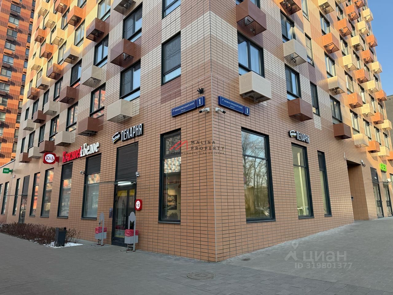 Помещение 128,6 м2 располагается в стилобатной части на 1 этаже, открытая планировка, два отдельных входа с фасада, высота потолка 4,56 м, витринные окна по фасаду. Электрическая мощность 25 кВт. Парковка перед фасадом. Место для размещения рекламы.